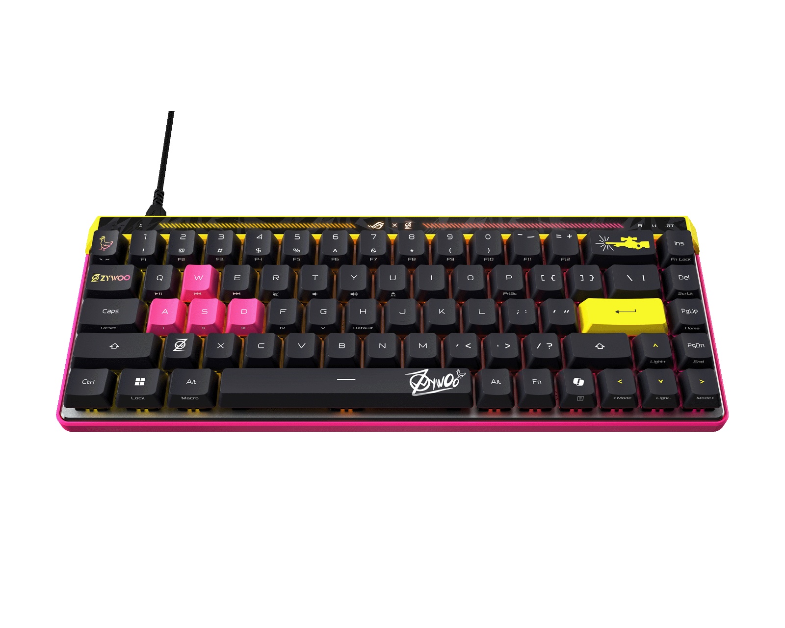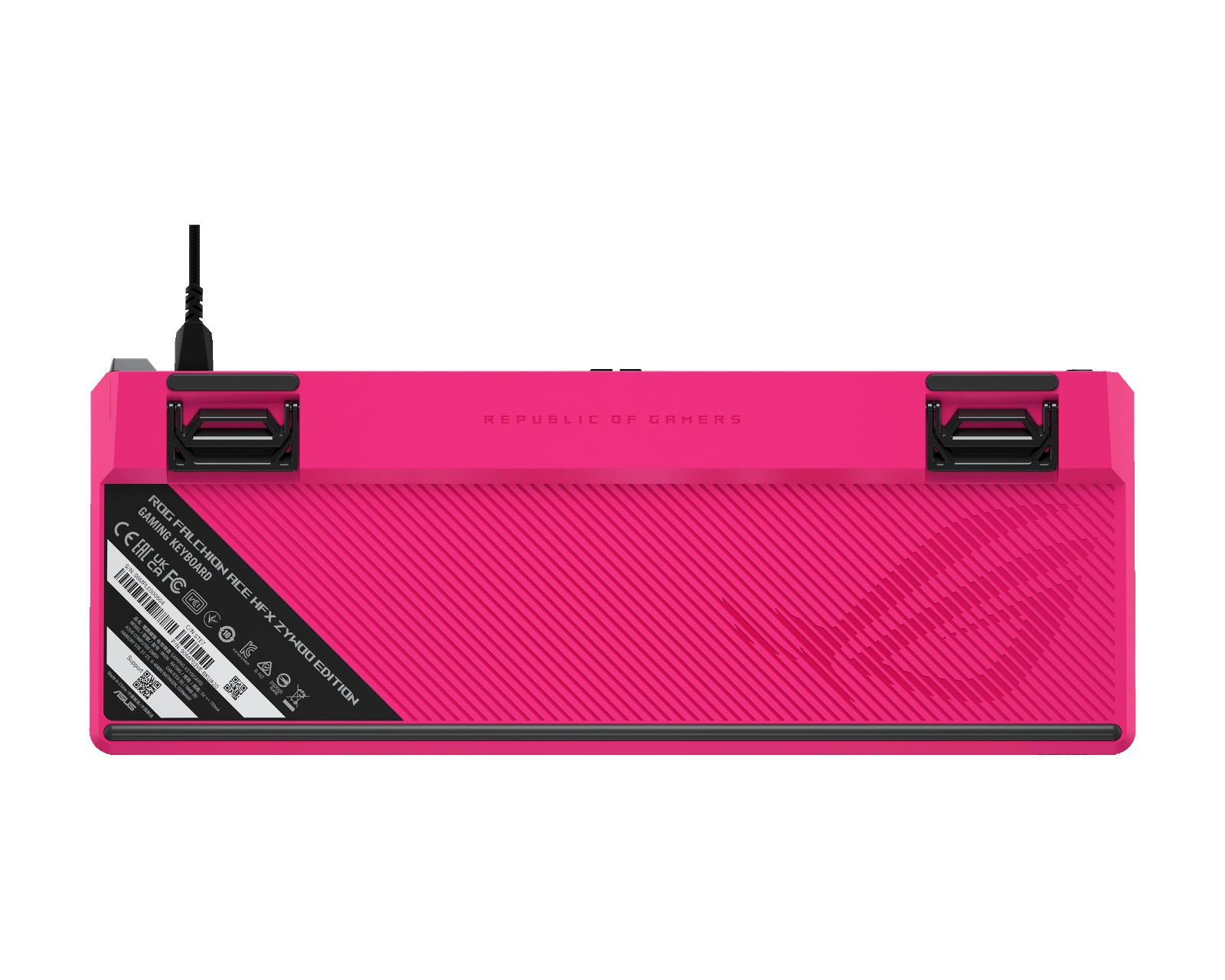ROG Falchion Ace HFX ZywOo Edition er et kompakt gamingtastatur fra Asus, som er designet til at maksimere ydeevnen i spil. Med for-smurt ROG HFX Magnetic Switches tilbyder det en justerbar aktiveringspunkt på 0.1 – 4.0 mm for hurtig respons, hvilket letter hurtige tryk og reducerer risikoen for manglende taster. Kombineret med en høj polling rate på 8000 Hz, garanterer det en responstid på 0.125 ms, hvilket skaber en glidende gameplay-oplevelse.Denne enhed har en robust konstruktion med fem-lags dæmpning og en silikonepakning, der absorberer lyd og giver en blødere skriveoplevelse. Med dual USB Type-C® porte kan brugeren nemt skifte mellem to computere. Den interaktive touchskærm muliggør intuitiv kontrol af medier, volumenjustering og belysning. Tastaturet er også designet med ZywOo's signaturæstetik, som afspejler hans fokuserede indstilling og konkurrenceånd.