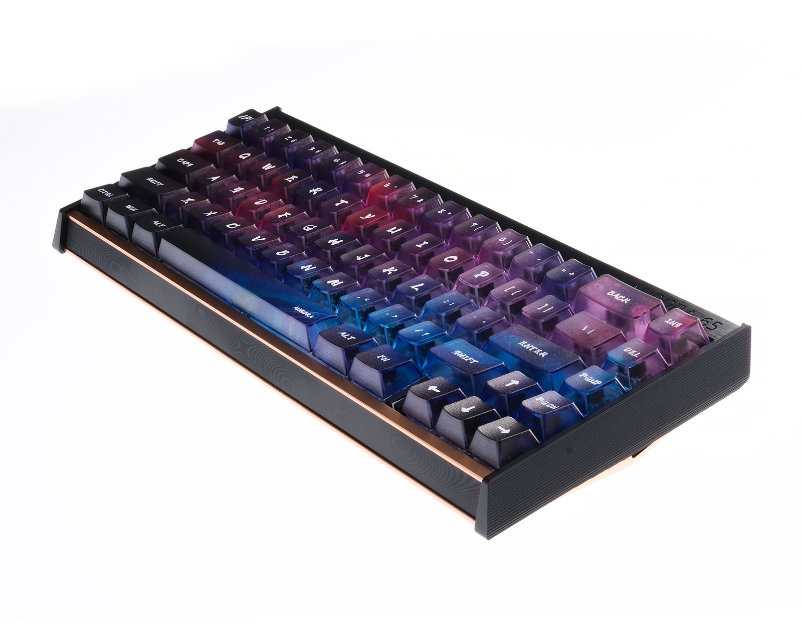 Aurora 65 HE tastatur er en kompakt og funktionel enhed fra IPI, designet til gamere, der prioriterer ydeevne og tilpasningsmuligheder. Den tilbyder en patentbeskyttet one-way quick release struktur og har en pollingfrekvens på 8000Hz, hvilket giver et hurtigt og pålideligt respons. Med et 66% layout er tastaturet ideelt til både spil og daglig brug.Kabinettet er lavet af 205 mesh sandblæst anodiseret materiale, hvilket giver en holdbar og moderne overfladefinish. Det har en PCB-positioneringsplade for præcis pasform og RT nøjagtighed på 0.01mm. Tastaturets keycaps har gennemgået en fem-sidet UV-udskrivningsproces, som sikrer, at symbolerne modstår slid over tid. Forbindelse sker via et USB-interface, og tastaturet understøtter fuld key hot-swappability for nem udskiftning af switcher. Belysningen er RGB, hvilket tillader tilpasning af lyseffekter. IPIs software er tilgængelig direkte i webbrowseren og gør det nemt at skifte og ændre indstillinger. (https://shan.ipigame.cn/ )