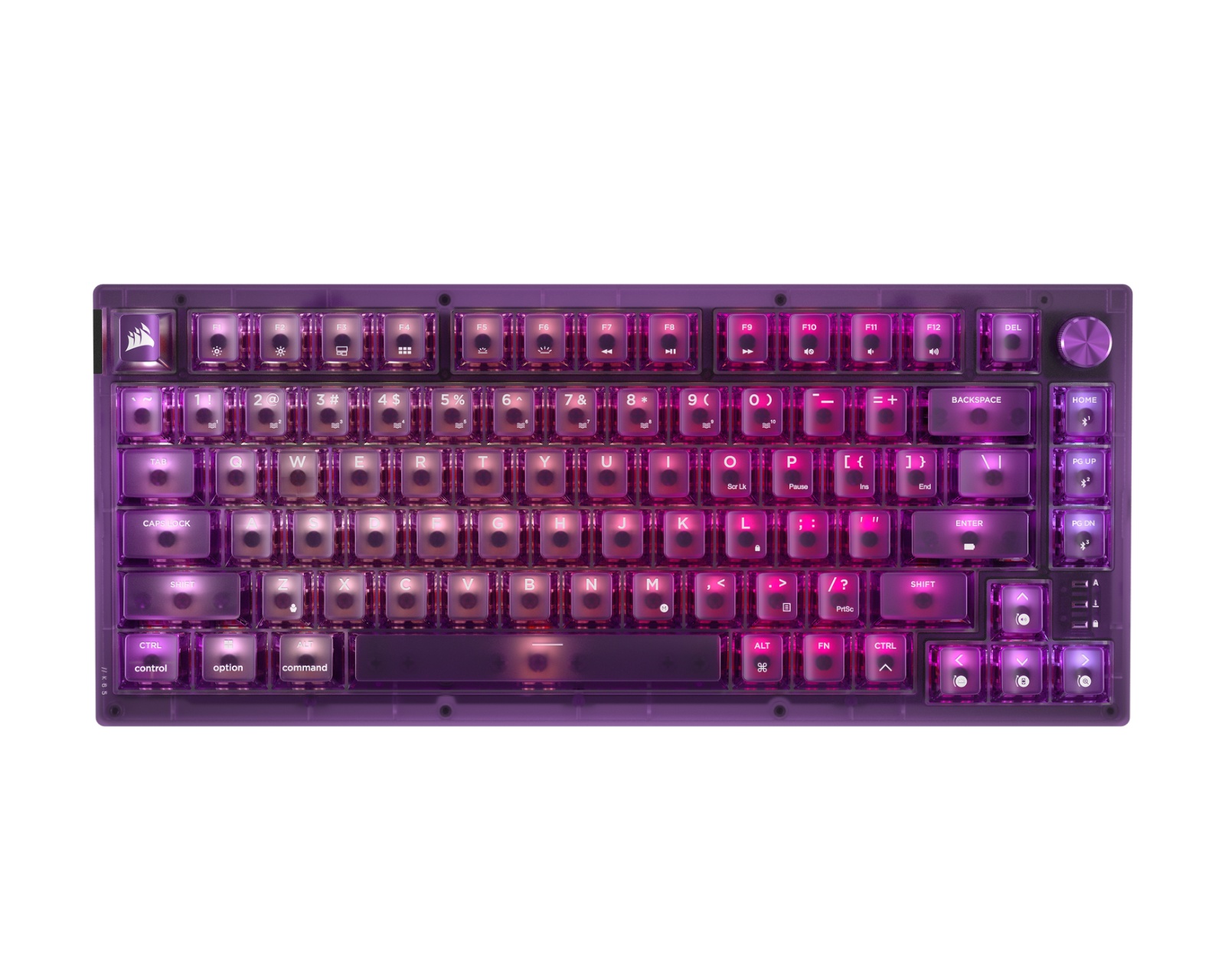 K65 PLUS er et kompakt trådløst gamingtastatur fra Corsair, der tilbyder enestående ydeevne og distinkt design med en gennemsigtig Atomic Purple-farveindstilling. Det er udstyret med forsmurte lineære CORSAIR MLX Red v2-switches, som giver hurtige og glatte tastetryk. Derudover har tastaturet integreret lyddæmpning, der effektivt reducerer uønsket lyd, hvilket skaber en finjusteret akustik ideel til både spil og skrivning.Byggekvaliteten i K65 PLUS er af højeste klasse med en ramme, der kombinerer styrke og stil. Tastaturet understøtter flere forbindelser, herunder ultrasnabbt 2,4 GHz trådløs kommunikation og Bluetooth®, hvilket giver alsidighed ved brug med PC, Mac og konsoller. Batteritiden er imponerende, med op til 266 timers opladning, hvilket sikrer, at gamere kan spille længe uden at skulle tænke på at oplade. Ved at udnytte disse funktioner leverer K65 PLUS en stor brugeroplevelse, der går hånd i hånd med professionelle krav.