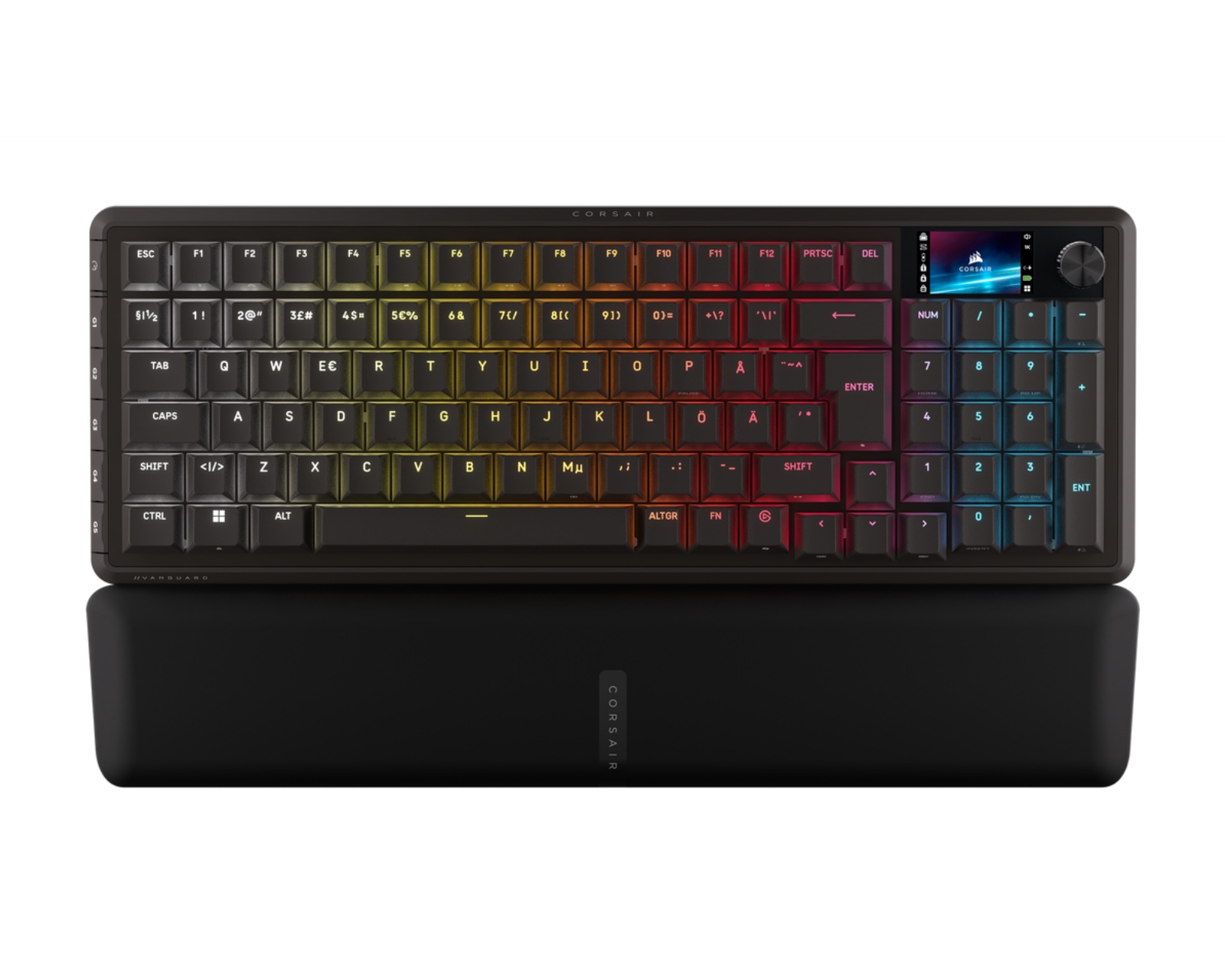 Vanguard 96 er et 96% fuld størrelse gamingtastatur fra Corsair, som tilbyder et balanceret design med piletaster og numerisk tastatur. Med en integreret LCD-skærm og et praktisk hjul til justering, giver dette tastatur en brugervenlig og funktionel oplevelse. Det er konstrueret til gamere, der værdsætter både ydeevne og fleksibilitet, mens det tilbyder et komprimeret format svarende til TKL-tastaturer.Byggekvaliteten hos Vanguard 96 er tydelig med sin robuste konstruktion og brug af materialer af høj kvalitet. Tastaturet understøtter Elgato Virtual Stream Deck-integration, hvilket muliggør sømløs kontrol af dine streams eller applikationer. Med 8 kHz trådløs hyper-polling og FlashTap SOCD-håndtering reduceres latensen betydeligt og maksimerer tastaturets responsivitet. Derudover giver CORSAIR Web Hub webbaseret tilpasning, hvilket gør det muligt for brugere at skræddersy tastaturet efter deres specifikke behov.