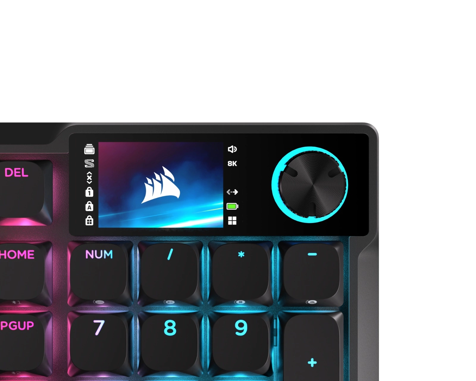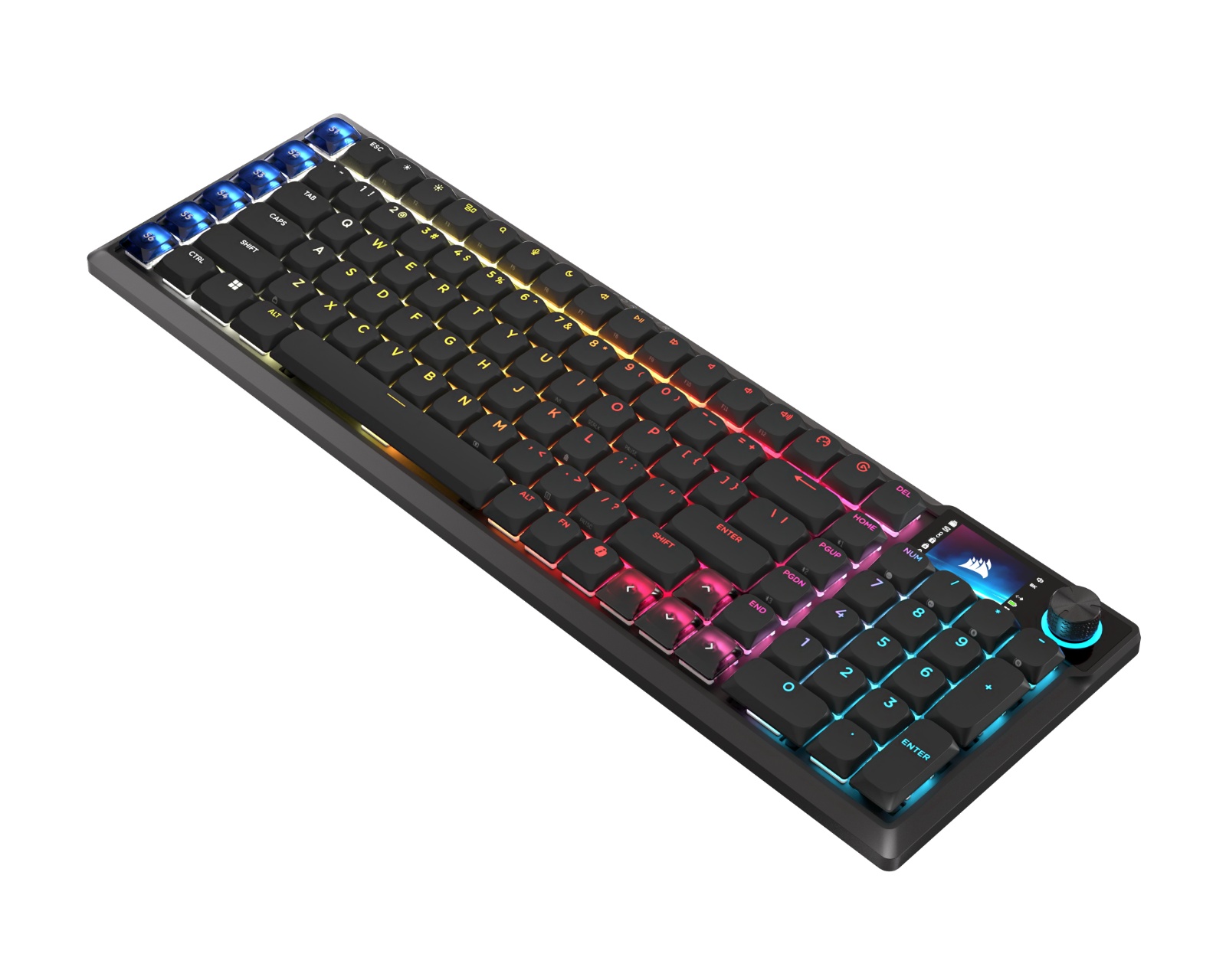 VANGUARD AIR 99 er et trådløst gamingtastatur fra Corsair, der kombinerer ydeevne og stil for at forbedre din spilleoplevelse. Dette tastatur er udstyret med OPX-optiske kontakter, der giver en ultra-responsiv oplevelse og en polling rate på 8000Hz, hvilket resulterer i hurtige og nøjagtige tastetryk. Med sin elegante aluminiumramme og en LCD-skærm er det også en æstetisk tiltalende del af din stationære opsætning.VANGUARD AIR 99 tilbyder tri-mode-tilslutning, hvilket muliggør tilslutning via 2,4GHz, Bluetooth og USB-A, så du kan bruge tastaturet på flere platforme, herunder PC, Mac og konsol. Denne alsidighed gør det nemt at skifte mellem enheder uden besvær. Tastaturet er designet til at optimere produktiviteten, hvilket opnås gennem Stream Deck-integration og SD-taster til at effektivisere dine daglige opgaver.