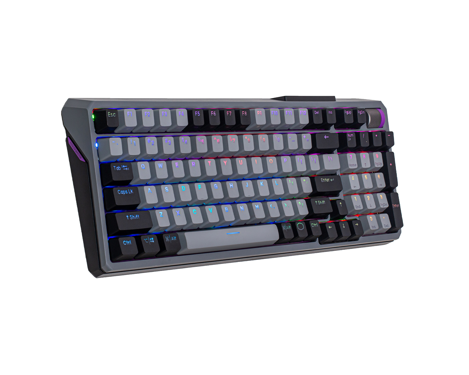 MK770 er et trådløst gaming-tastatur, der imponerer med sin alsidighed - det understøtter Bluetooth, 2,4 GHz og kablet forbindelse. Nyd en farverig atmosfære med RGB-belysning. For minimal forsinkelse og præcis respons har tastaturet en opdateringshastighed på 1000 Hz i kablet og 2,4 GHz-tilstand, 125 Hz i Bluetooth-tilstand. Med silikonedæmpere og EVA-materiale for en mere støjsvag og mere behagelig brugeroplevelse. Tastaturet er udstyret med højtydende Kailh Box V2-switche for optimal tastrespons.Tag dit spil eller arbejde til et nyt niveau af komfort og effektivitet med Cooler Masters MK770-tastatur. Oplev enestående ydeevne og jævn betjening med dette tastatur, som er udstyret med et kraftigt 4000 mAh batteri til langtidsbrug. Tilslut nemt med det generøse 1,8 meter lange kabel og nyd lynhurtig respons med en imponerende responstid på 1 ms.