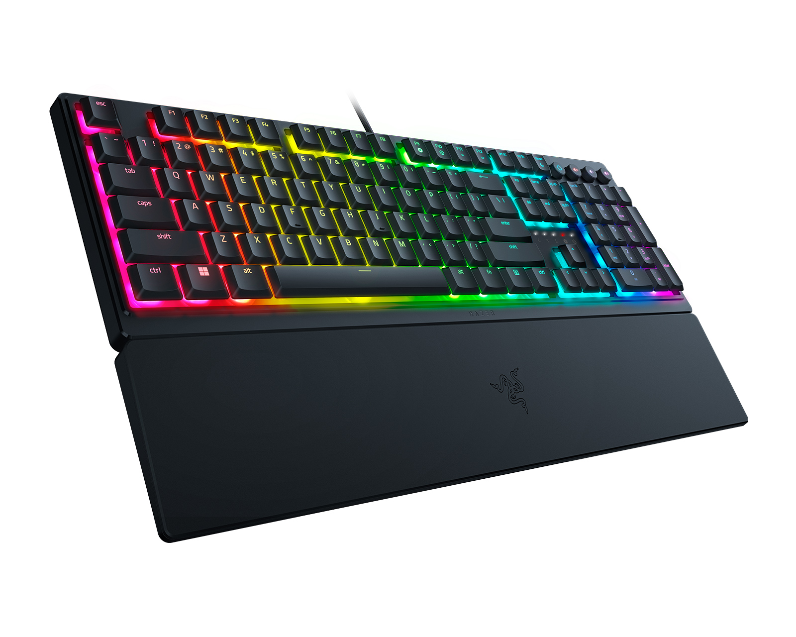 Razer Ornata V3 er et gamingtastatur i fuld størrelse med avanceret Razer Mecha-Membrane-teknologi, der leverer en hurtig og responsiv spiloplevelse. Det har en polling rate på 1000Hz og 10-zoners Razer Chroma RGB-belysning med understøttelse af op til 16,8 millioner farver. Tastaturet er designet til gamere og professionelle brugere, der søger høj ydeevne og tilpasningsmuligheder.Kernen i Razer Ornata V3 består af Mecha-Membrane-kontakter, der kombinerer egenskaberne ved mekaniske og membran-kontakter. Disse kontakter giver taktil feedback og en klikfølelse, hvilket gør dem brugervenlige til både gaming og skrivning. Den dedikerede mediekontrol giver dig mulighed for at justere lydstyrken uden at afbryde dit spil, hvilket øger produktiviteten. Tastaturet har også et 2 meter langt kabel til nem tilslutning via USB. Ergonomisk designede detaljer, såsom den magnetiske håndledsstøtte, giver øget komfort under længere tids brug. Yderligere funktioner inkluderer anti-ghosting og N-key rollover for at imødekomme kravene fra professionelle gamere.
