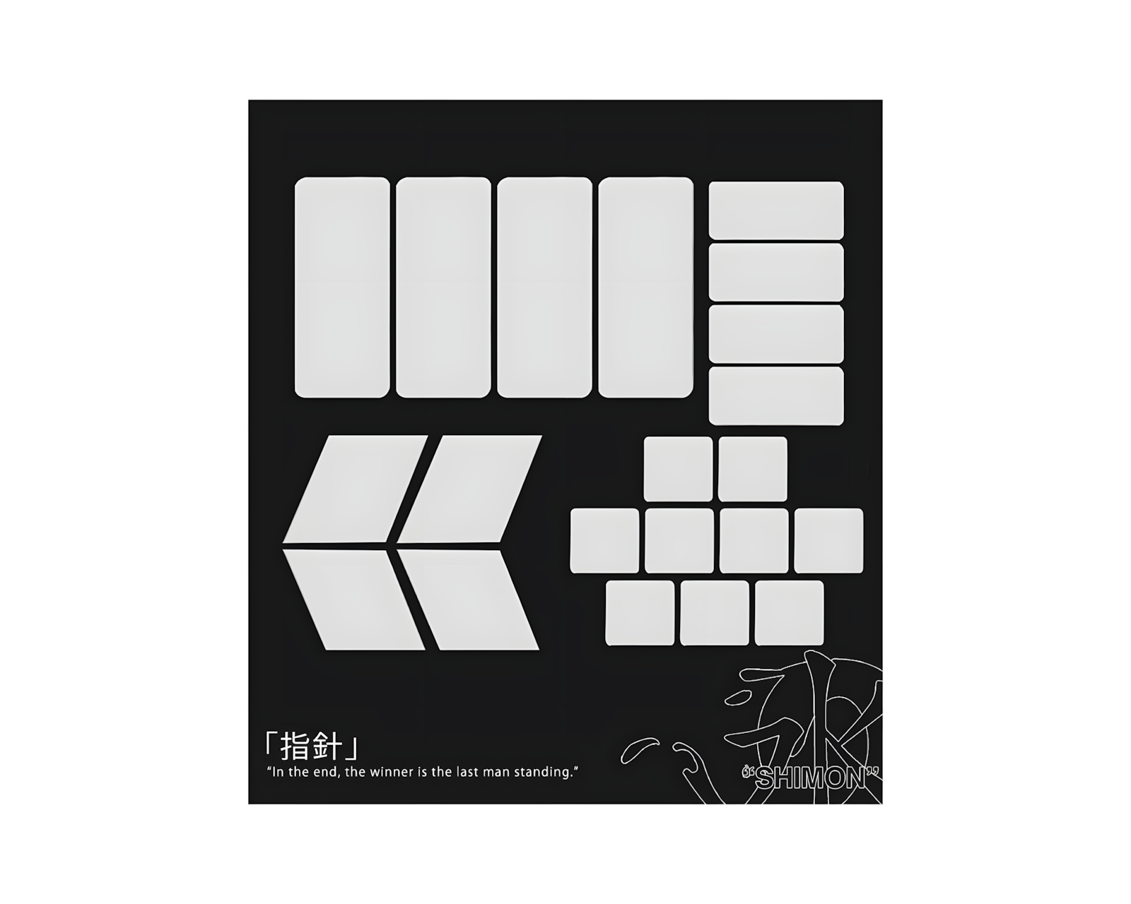 Shimon Grepp er en serie musgreb fra Mizu Works, designet til gamere, der søger præcision og følelse uden at gå på kompromis med overfladens kvalitet. Med en tykkelse på kun 0,2 mm er disse greb nærmest usynlige og tilbyder et rent og minimalistisk design, der forbedrer din spilleoplevelse. Serien indeholder 20 greb i fire individuelle former, hvilket gør det nemt at tilpasse din mus efter egne præferencer.Shimon Grepp er fremstillet af et helt nyt materiale, der adskiller sig fra Senjutsu-grebene, hvilket giver en forbedret taktil følelse og holdbarhed. Det glatte overfladelag letter placering og fastgørelse, samtidig med at det sikrer, at grebene ikke forstyrrer din målrettede bevægelse. Da de er så tynde, lægges de knap mærke til ved brug, hvilket betyder, at fokus forbliver på spillet, ikke på udstyret. Hvert greb er designet til at optimere præcisionen og kontrollen af din mus.