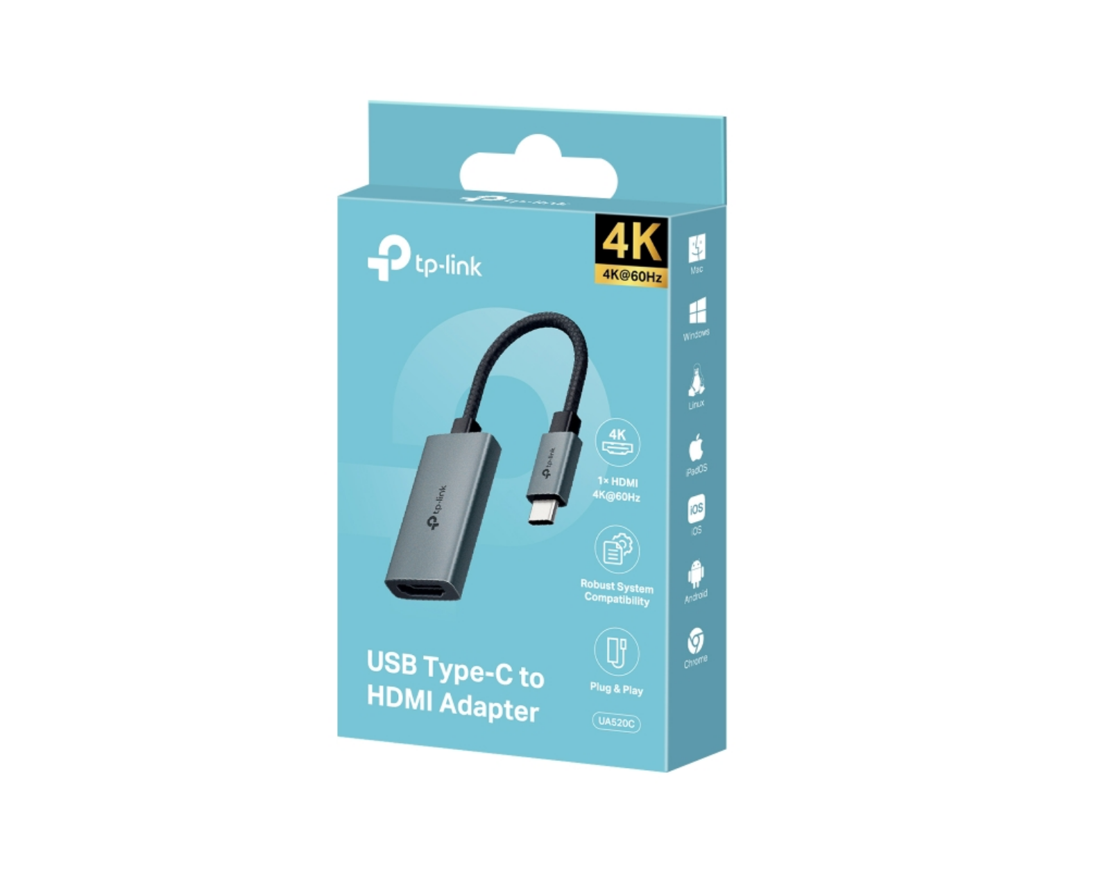 UA520C USB Type-C til HDMI-adapter fra TP-Link, designet til nemt at tilslutte enheder med USB-C til HDMI. Med support for MacBook Pro og iPad Pro tilbyder denne adapter en sømløs overgang mellem USB-C-porten og en HDMI-forbindelse, uden behov for ekstra installation. Den er kompatibel med flere operativsystemer, herunder MacOS, Windows, iPadOS, iOS, Android, Linux OS og Chrome OS.UA520C er bygget med et fleksibelt 100 mm vævet kabel, hvilket gør det muligt at frigøre vigtige porte på dine enheder for bedre brug og præstation. Den robuste aluminiumlegering i casen og det vævede kabel sikrer holdbarhed, samtidig med at den kompakte design gør den let at transportere. UA520C opfylder kravene fra nutidens brugere og garanterer, at du får en både holdbar og praktisk løsning til HDMI-forbindelse.