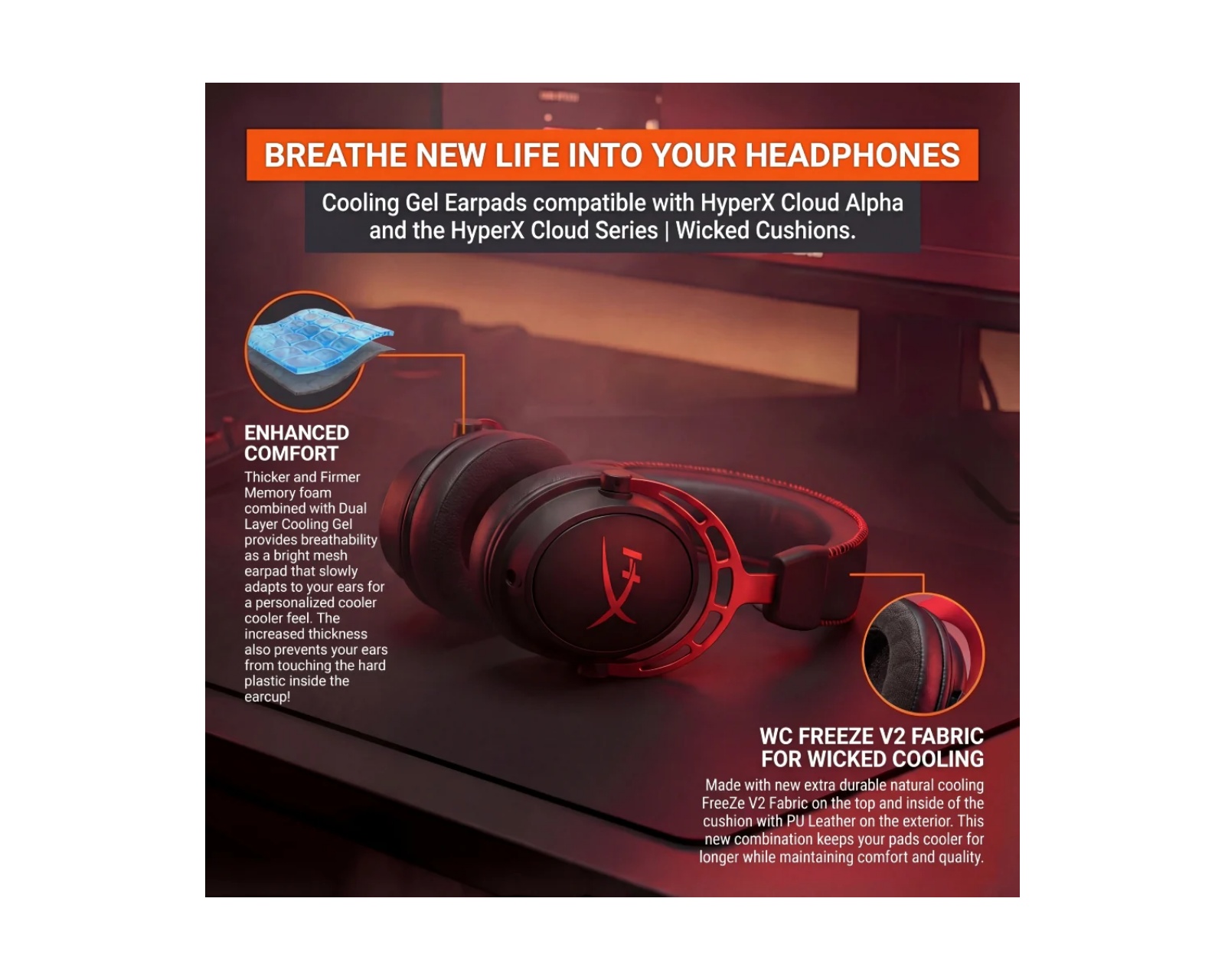 WC FreeZe ørepuder er ørepuder fra Wicked Cushions. De tilbyder forbedret komfort og køling under brug og er særligt designet til HyperX Cloud-headset. Produkterne anvender FreeZe V2 køleteknologi, der holder puderne kolde længere og giver en bedre oplevelse under gaming-sessioner. Disse ørepuder har en hurtig installationsproces og er kompatible med en række forskellige HyperX-modeller.WC FreeZe ørepuder er lavet af et ekstra tykt memory-skum, der former sig efter øret og skaber en trykfri pasform, hvilket giver bedre lydisolering og forbedret ergonomi. Den vinklede design øger pladsen til ørerne og bidrager til at mindske trykket under lange spilsessioner. Materialet er slidstærkt, hvilket gør dem holdbare til daglig brug. Ørepuderne er specifikt designet til en mængde HyperX-modeller, men passer ikke til andre mærker.
