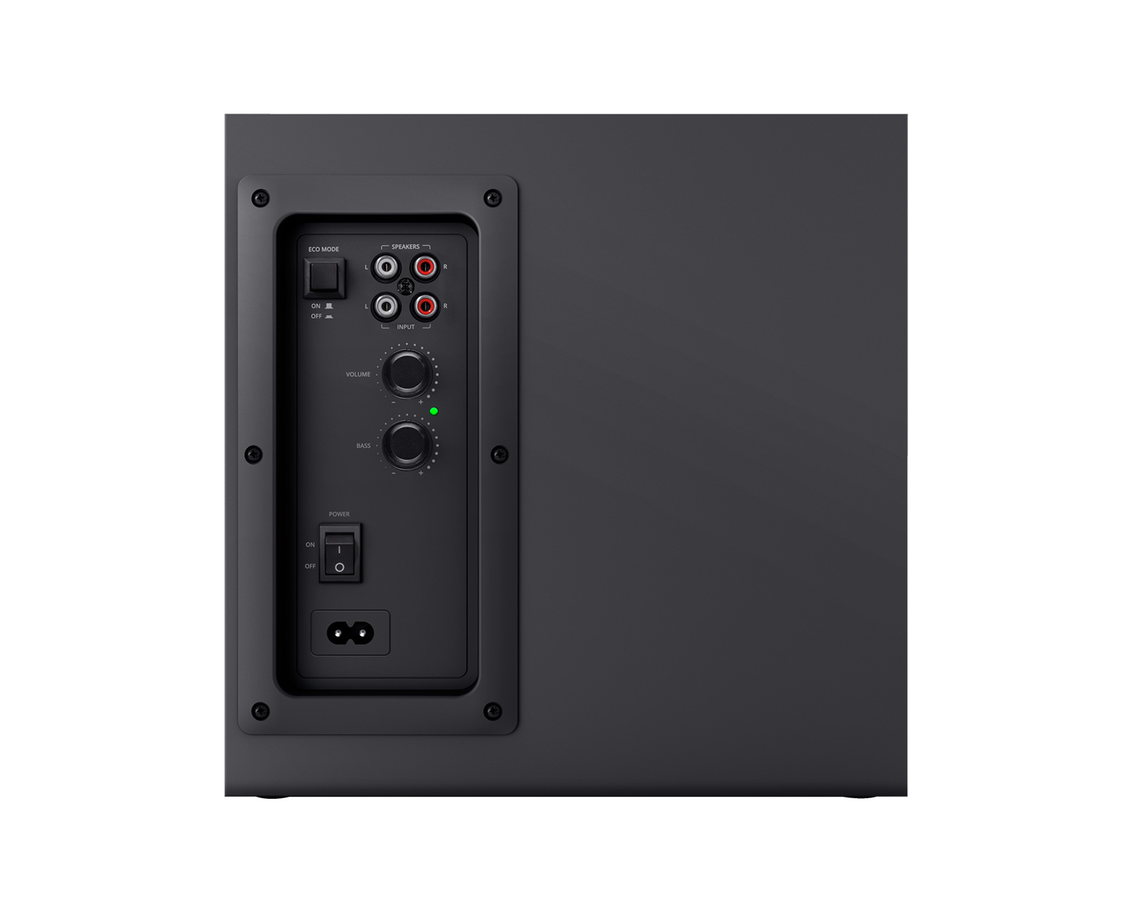 Tag kontrol over din lydoplevelse med yderligere kontroller til lydstyrke- og basjusteringer på subwooferen, hvilket gør det nemt at skrue op for energien eller tone ned, når det er nødvendigt. Derudover sætter den smarte strømstyring højttalerne i dvaletilstand, når de ikke er i brug, hvilket sparer energi uden at gå på kompromis med ydeevnen.
