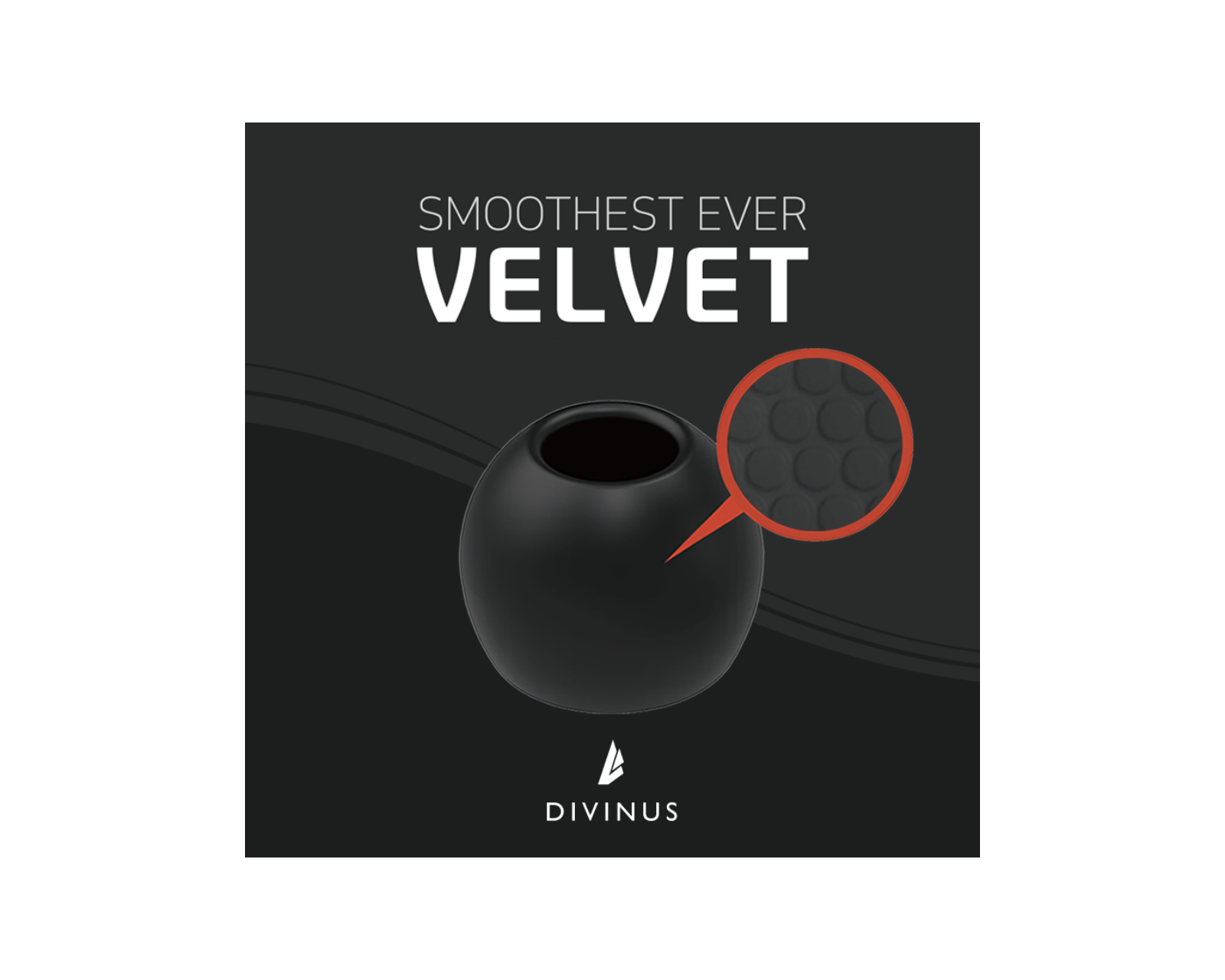 Velvet er in-ear-ørepropper fra Divinus, der tilbyder en brugerdefineret og behagelig pasform til brug med en række forskellige in-ear-hovedtelefoner. Disse ørepropper er specielt designet til at give brugeren en bedre lydoplevelse ved at skabe en forsegling i øret, hvilket hjælper med at isolere lyd og forbedre basgengivelsen. Pakken indeholder tre par i størrelse (L). Velvet in-ear-ørepropper er designet til at fungere med in-ear-hovedtelefoner, der har en udgangsdiameter (dyse) på 3 til 5 mm.Ørepropperne er lavet af elastisk silikonemateriale, der giver både komfort og holdbarhed under længere lyttesessioner. Det fleksible design giver mulighed for en sikker og stabil placering i øret, hvilket reducerer risikoen for, at de falder ud under aktiv brug. Disse in-ear-ørepropper er velegnede til både langrend, træning og mere stillesiddende brug, hvilket gør dem alsidige.