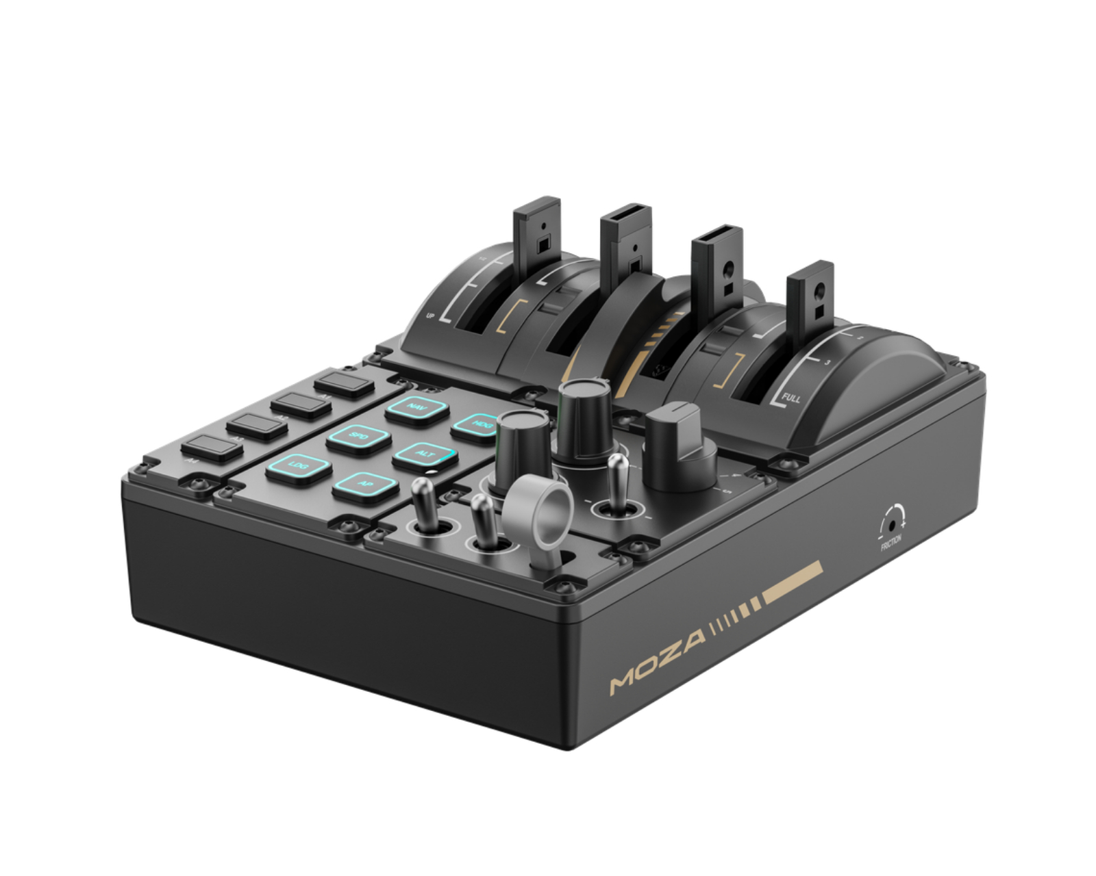MTQ tilbyder fire akser til gas, bremse, flaps og omvendt – alle med fysiske låsepositioner for øget realisme. Den tilsluttes problemfrit til MOZA-basenheder (AB6/AB9) via en RJ11-kontakt, hvilket eliminerer behovet for USB-forbindelse.