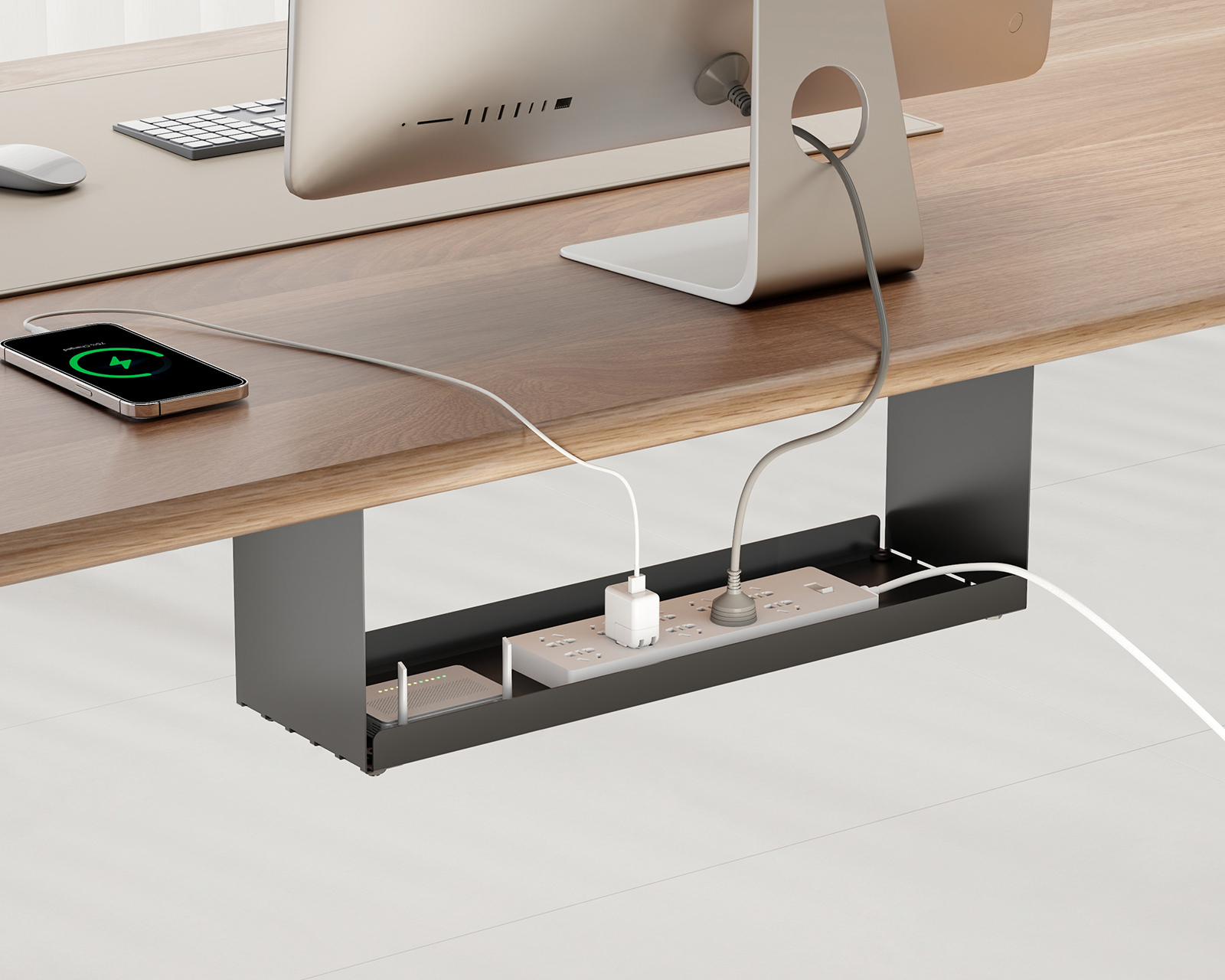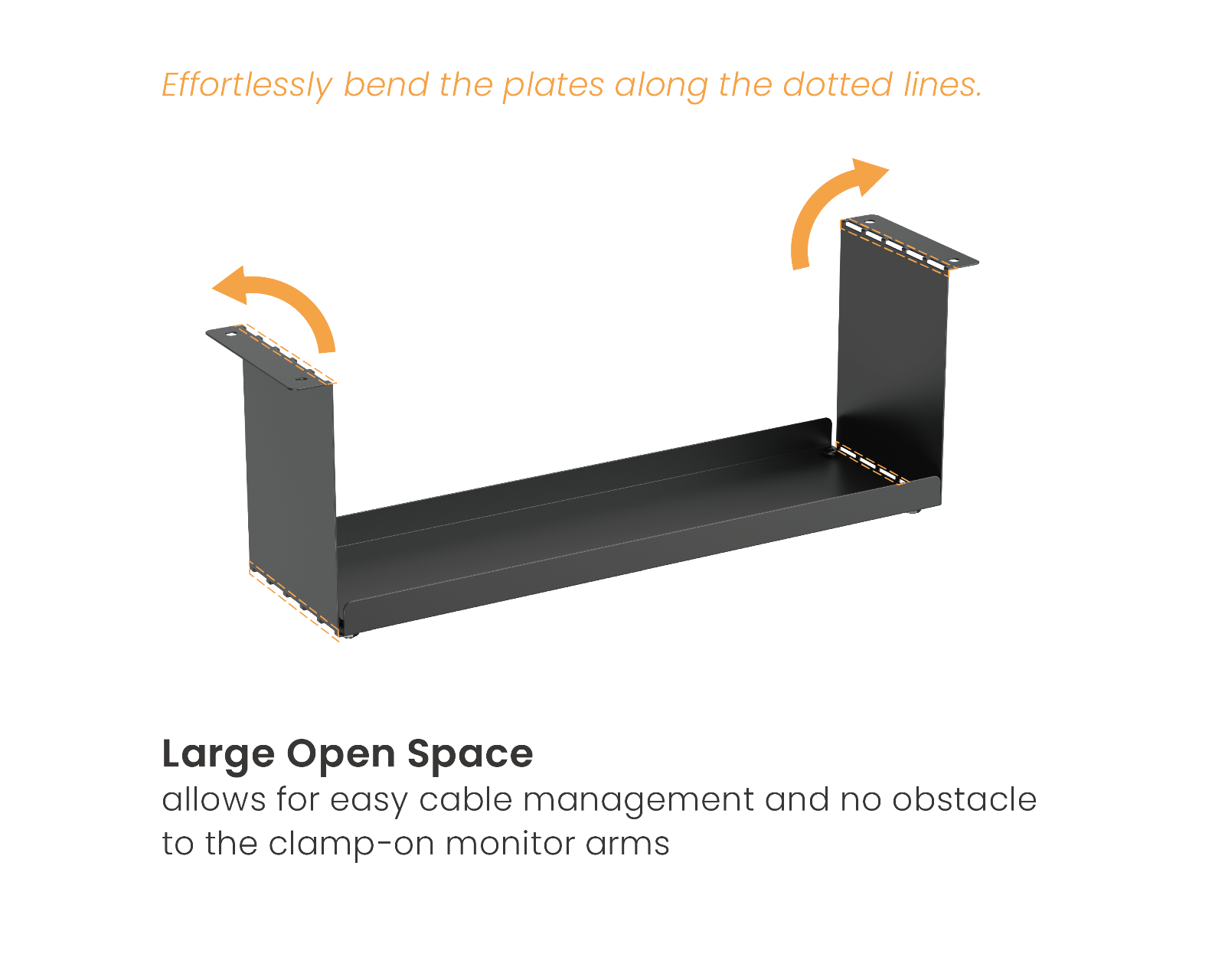 Compact Cable Channel til skrivebord er en kabelorganisator fra MaxMount, der tilbyder struktureret håndtering af kabler på skrivebordet. Den gør det muligt at skjule og beskytte kabler mod slitage og holder alt organiseret for øget effektivitet. Med en vægtkapacitet på 5 kg og dimensioner på 454x120x150 mm er den velegnet til kontormiljøer og hjemmekontorer. Kabelkanalen er lavet af stål og har en pulverlakering, der giver høj holdbarhed og et æstetisk tiltalende udseende i matsort. Den åbne arkitektur giver mulighed for øget ventilation og gør det lettere at få adgang til kablerne, når det er nødvendigt. Installationen sker via skruefastgørelse, hvilket sikrer, at den sidder godt fast.Oversigt