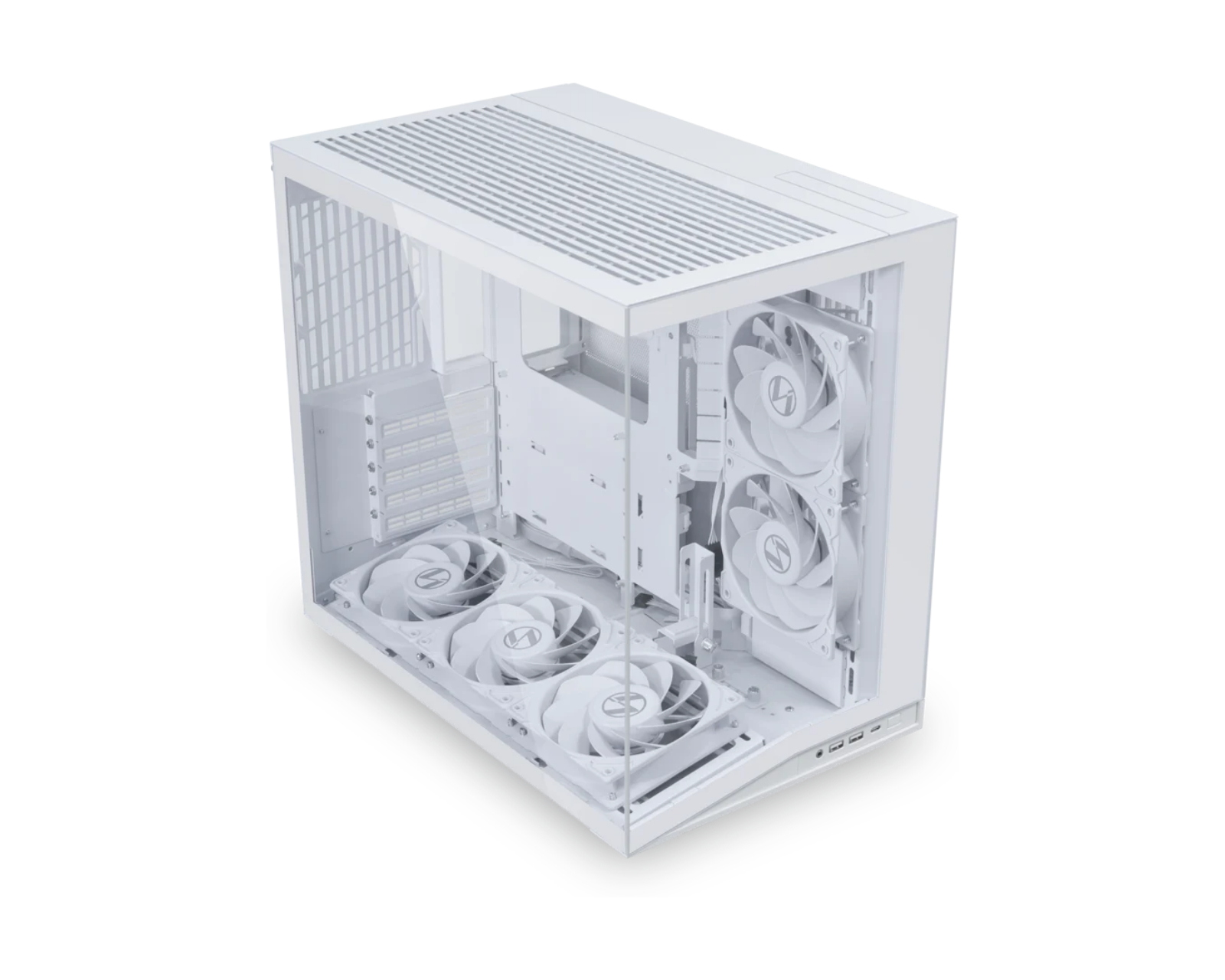 Lian Li O11D Mini V2 Flow er et chassis fra Lian Li, der tilbyder et stort indre rum trods sin kompakte størrelse. Det er designet til at muliggøre installation af både luft- og vandkøling, samt har mulighed for vertikal montering af grafikkort. Udstyret med hærdet glas på siderne og fronten, er det også enkelt at vise dine komponenter.Inde i chassiset er der generøst plads til højtydende hardware, hvilket gør det muligt at montere grafikkort op til 400 mm. Chassiset inkluderer GPU-beslag til både vertikal og horisontal installation. Ren kabelhåndtering garanteres gennem kabelholdere og støtte til bundkort med bagtilslutning, hvilket forenkler kabeltrækningen. Desuden gør syv steder til blæsere, hvoraf fem blæsere (tre i bunden og to med omvendte blade på siden) allerede er installeret, at kølingen er effektiv selv under belastning.