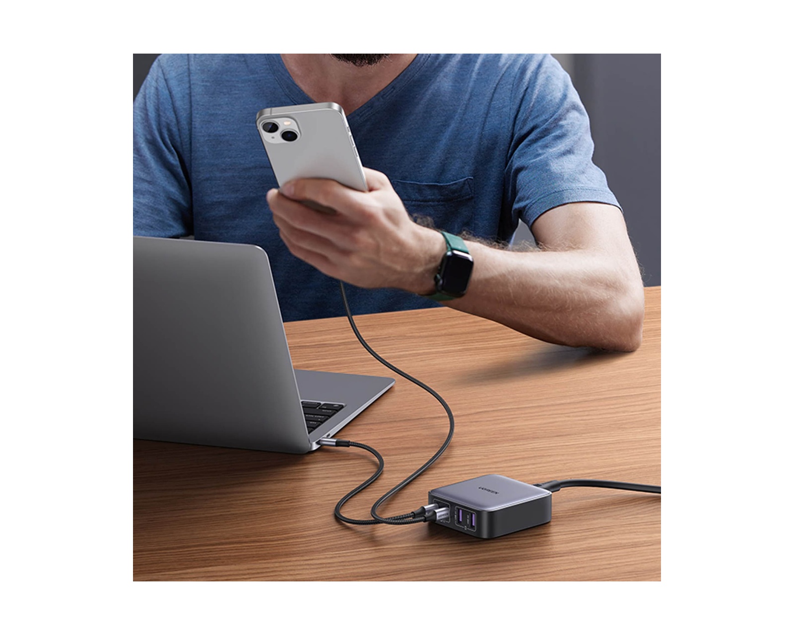 Vi præsenterer UGREEN Nexode 65W 4-ports bordoplader GaN - den ultimative strømløsning til alle dine opladningsbehov. Designet med præcision og effektivitet i tankerne, er opladeren spækket med funktioner, der vil revolutionere den måde, du oplader dine enheder på.Med sit elegante og kompakte design er UGREEN Nexode-opladeren perfekt til både hjemme- og kontorbrug. Ladestationen har to USB-C-porte til maksimal opladning på 65 W og kan oplade din 13-tommer MacBook Air til 100 % på mindre end 1,5 time. Sig farvel til at vente på, at dine enheder oplades - med UGREEN Nexode er du tilbage på fuld kraft på ingen tid.