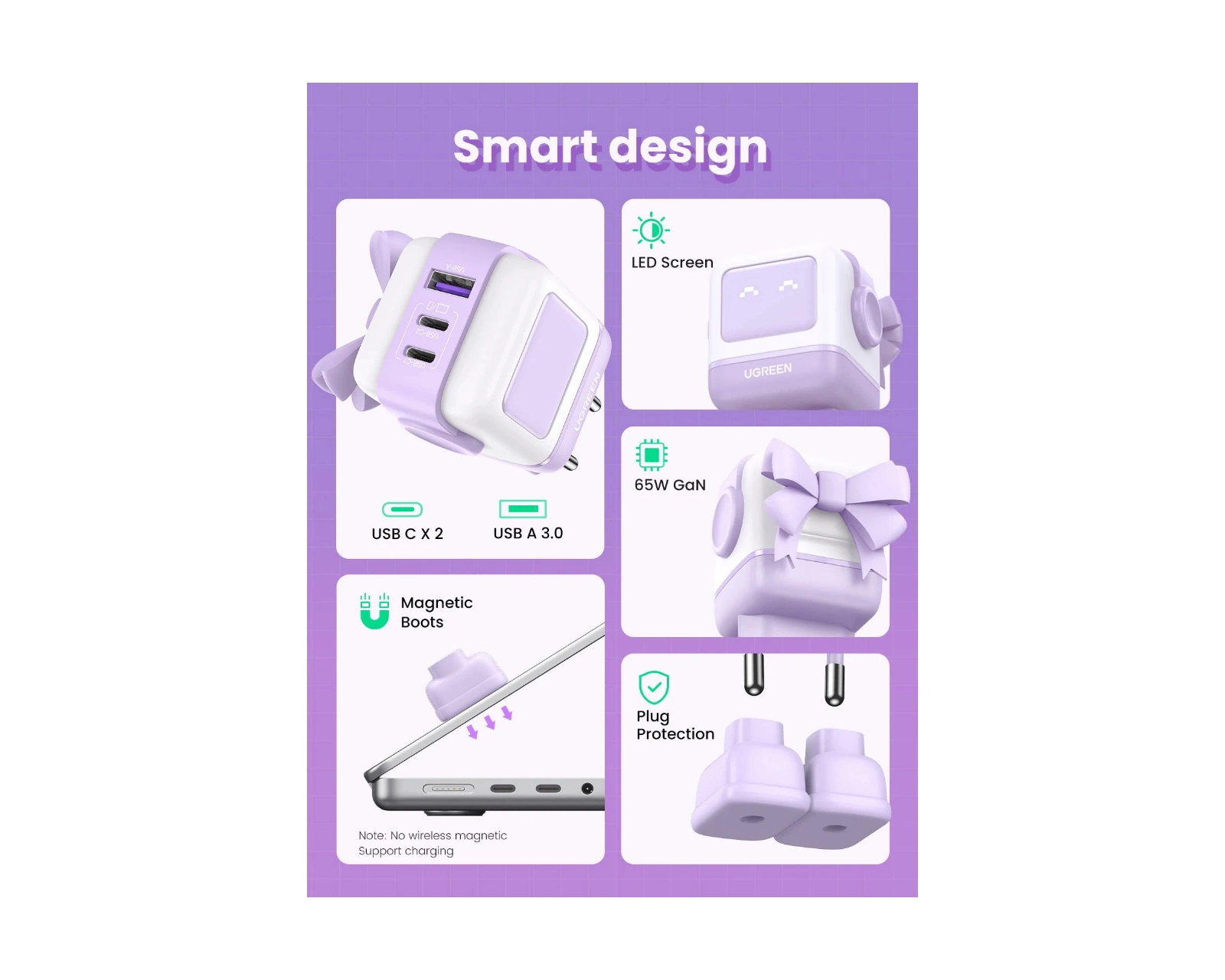 Nexode Robot Charger med 3 porte og 65W er en praktisk og effektiv opladningsløsning til dine elektroniske enheder. Flere porte giver dig mulighed for at oplade flere enheder samtidigt, hvilket sparer tid og giver bekvemmelighed. Dens 65W output gør det muligt hurtigt og effektivt at oplade dine enheder, så du altid er klar til at gå.Nexode Robot-opladere er ikke kun praktiske, men også stilfulde, hvilket gør dem til en perfekt kombination af moderne teknologi og brugervenlige funktioner. Dette unikke design gør opladning enkel, smidig og effektiv for en forbedret brugeroplevelse.