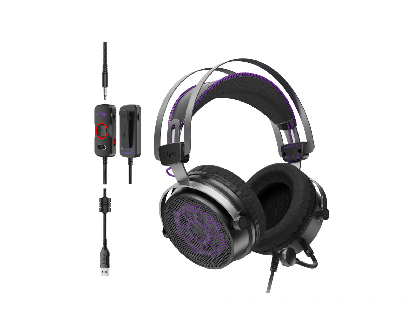 FIFINE H18V er et gaming headset fra Fifine, som tilbyder en åben akustisk design og højkvalitets 53 mm drivere for overlegen lydgengivelse. Dette headset er designet til at give gamere en taktil fordel under spil, med fokus på lyddetaljer, der kan afgøre udfaldet af en kamp. Vigtige funktioner inkluderer en aftagelig mikrofon, der sikrer klare kommunikationer og en ergonomisk adaptiv hovedbøjle til langvarig spiloplevelse.Byggekvaliteten på H18V er optimeret for komfort og holdbarhed, med et letvægtsdesign og et dobbeltlag i hovedbøjlen, der sikrer en jævn vægtfordeling. De ekstra tykke skumørepuder er både bløde og ventilerede, hvilket bidrager til en behagelig følelse under lange spilsessioner. USB-kontrollen, der følger med, muliggør hurtig justering af lydstyrken og mikrofonens lyd, hvilket gør det nemt at forblive fokuseret under intense øjeblikke. Med et 3,5 mm jack og USB-A-forbindelse kan headsettet nemt tilsluttes flere platforme som PC, PlayStation og Xbox.