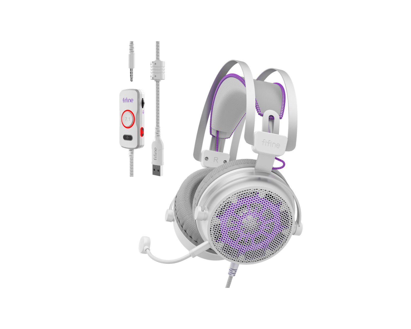FIFINE H18V er et gaming headset fra Fifine, der tilbyder et åbent akustisk design og højtkvalitets 53 mm drivere for overlegen lydgengivelse. Dette headset er designet til at give gamere en taktil fordel under spil, med fokus på lyd detaljer, der kan afgøre udfaldet af en match. Vigtige funktioner inkluderer en aftagelig mikrofon, der garanterer klare kommunikationer, og en ergonomisk adaptiv hovedbøjle til langvarige spilsessioner.Bygqualiteten på H18V er optimeret for komfort og holdbarhed, med et letvægtsdesign og et dobbeltlag i hovedbøjlen, der sikrer en jævn vægtfordeling. De ekstra tykke skumørepropper er både bløde og ventilerede, hvilket bidrager til en behagelig følelse under lange spilsessioner. USB-kontrollen, der følger med, muliggør hurtig justering af volumen og mikrofonens lyd, hvilket gør det nemt at være fokuseret under intense øjeblikke. Med et 3,5 mm stik og USB-A forbindelse kan headsettet nemt tilsluttes flere platforme som PC, PlayStation og Xbox.