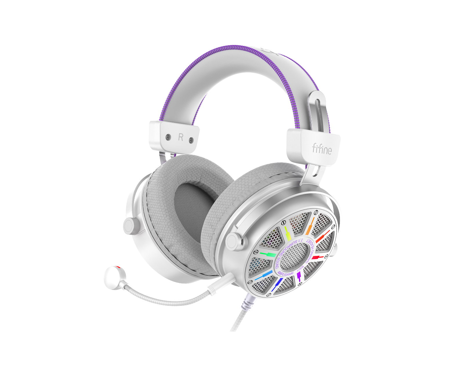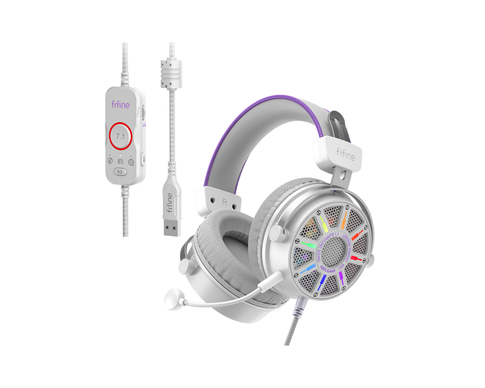 H19 er et gaming headset fra Fifine, designet til at give en overlegen lydoplevelse under gaming og streaming. Headsettet leverer 7.1 virtual surround lyd, hvilket giver et detaljeret lydbillede og lader gamere høre præcist, hvor lyden kommer fra. Udstyret med en aftagelig mikrofon, gør det kommunikationen under spillet både klar og tydelig. H19's byggekvalitet er af højeste standard, med bløde ørepuder designet til at give komfortabel støtte under lange spilsessioner.RGB-belysningen kan tilpasses, hvilket giver gamere mulighed for at skræddersy deres headset for at matche det resterende udstyr. Med forskellige EQ-indstillinger kan du også justere lydprofilen baseret på hvilket spil du spiller, hvilket giver en ekstra niveau af tilpasning for at optimere lydoplevelsen. Hovedbåndet er justerbart, hvilket sikrer en perfekt pasform til forskellige hovedstørrelser og giver høj ergonomi under brug.