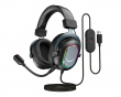 Fifine H6 USB Headset 7.1 Surround Sound; et let og behageligt headset, der passer til enhver gaming- og streamingopsætning. Dette USB-gaming-headset bruger 24-bit dyb lyd til utrolig detaljeret lyd, som omsættes til mere nøjagtige lydrepræsentationer for at give dig et forspring på slagmarken. Sammen med et letvægtsdesign på 330 g og en åndbar læderstøtte er dette headset klar til timevis af brug uden at ofre komfort. 7.1 surround sound, EQ-tilstande, mute-knap og lydstyrke op/ned-knapper, alle kontroller er lige ved hånden, indbygget i det flettede kabel.- 16-bit/24-bit hastighed