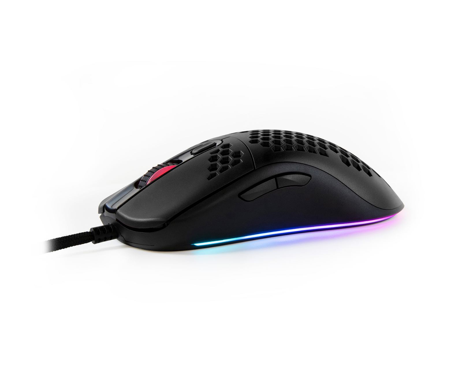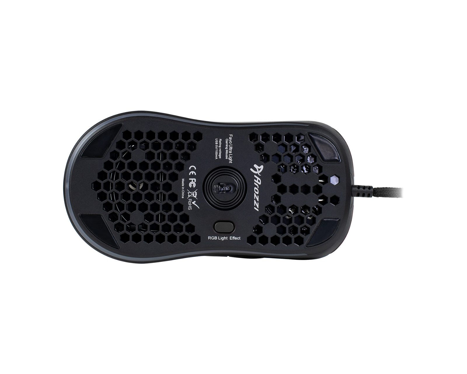Favo Ultra Light Gaming Mouse er en gamingmus fra Arozzi, som kombinerer lav vægt og høj ydeevne. Med en DPI på op til 16000 og en Pixart 3389-sensor muliggør musen præcision og hastighed, som er afgørende i intense spilsituationer. Den er udstyret med seks knapper og tilbyder en USB-forbindelse for stabil og direkte respons.Musens konstruktion er omhyggeligt designet for at minimere vægten, hvilket gør, at den kun vejer 74 gram. Den har desuden et scrollhjul, der letter navigation og hurtig adgang til forskellige funktioner. Belysningen er RGB, hvilket kan tilpasses efter brugerens præferencer. Switchene er af typen Omron, kendt for deres pålidelige ydeevne og lange levetid.