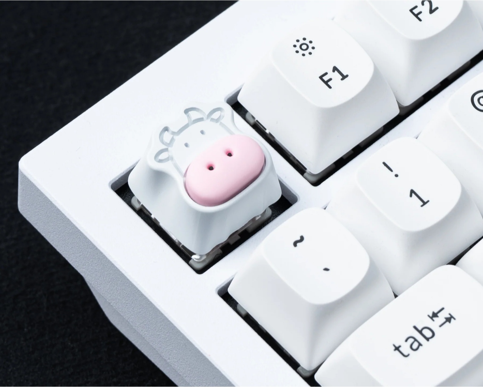 For et tastatur ud over det sædvanlige, prøv Keychron Cute Cow Silicone Aluminum Alloy Artisan Keycap. Nøgleknappen i aluminiumslegering giver stabilitet og holdbarhed, silikonenæsen er designet til at give brugeren en behagelig følelse ved tryk. Denne knap er CNC-graveret og giver både en unik følelse og et unikt look til tastaturet. Vægten på 4,2 gram og udseendet er perfekt til dem, der ønsker at tilpasse deres tastatur til noget helt eget.- Materiale: Aluminiumslegering, PC, silikone