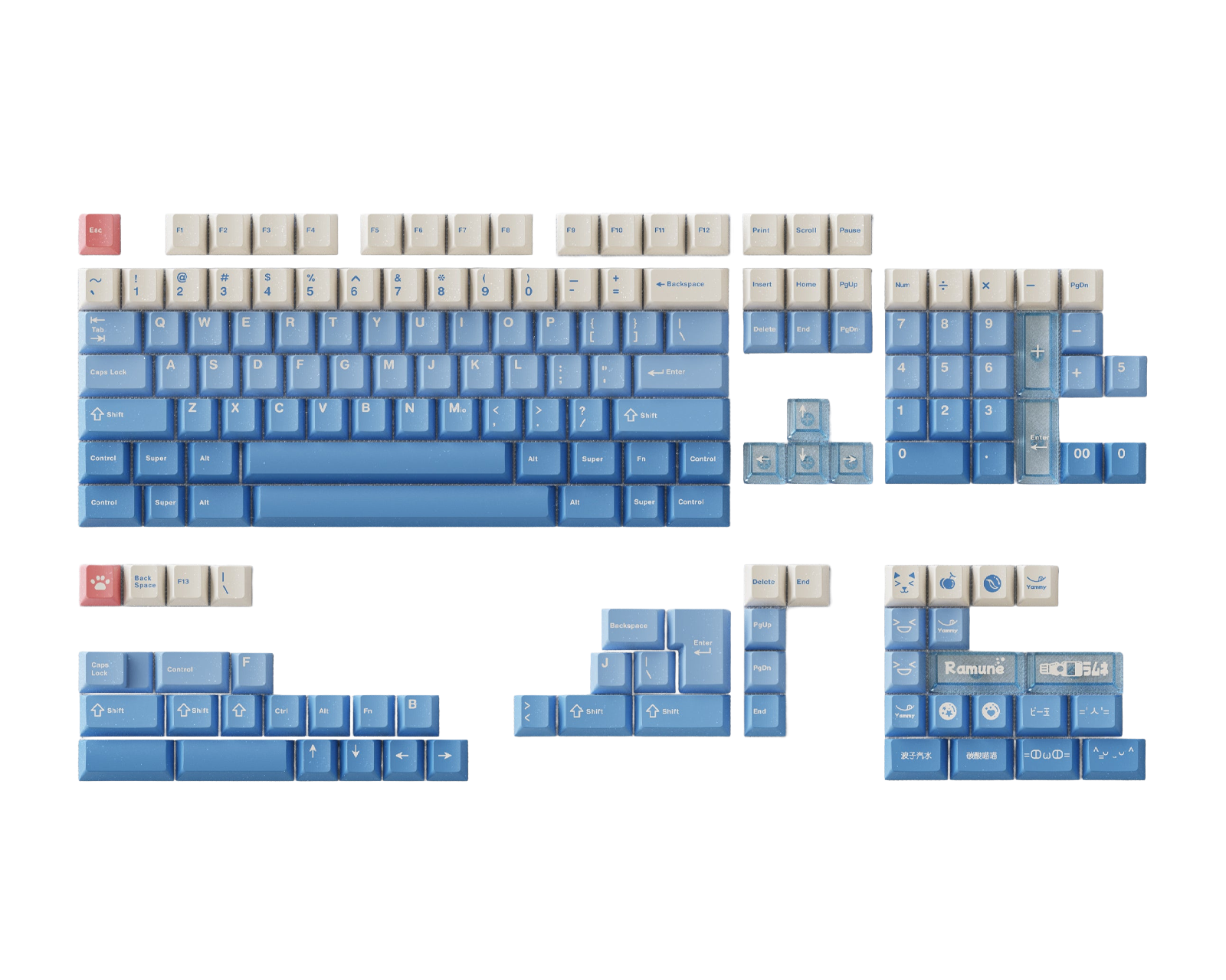 Soda Pop er et keycap-sæt fra Keyboard Science, der kombinerer funktionalitet og unikt designede knapper til tastaturer. Sættet er fremstillet med fokus på høj kvalitet og holdbarhed, hvilket gør det velegnet til gamere og brugere, der søger en tilpasset oplevelse. Med Cherry-profil og en byggetykkelse på 1,6 mm giver disse keycaps en god følelse og hurtig respons, når de bruges.Keycaps er fremstillet af PBT og PC, hvilket bidrager til både styrke og modstandsdygtighed over for slid fra daglig brug. Den avancerede fremstillingsproces med PBT-dye-sublimering og PBT double-shot injektionsstøbning sikrer, at detaljer og farver bevares over tid. Sættet inkluderer alle nødvendige knapper til en komplet installation, hvilket gør det let at opgradere et tastatur. Med et stilrent udseende muliggør keycap-sættet et personligt touch for alle typer brugere, hvad enten det drejer sig om arbejde, gaming eller andet kreativt arbejde.