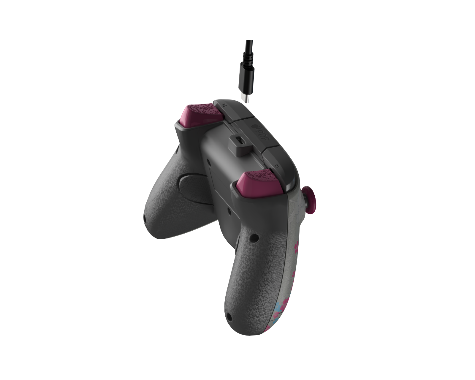 Rematch Trådet Controller er en spillcontroller fra Turtle Beach, der er kompatibel med Xbox Series X|S, Xbox One og Windows 10/11. Controlleren er udstyret med lydkontrol på D-paden og funktioner til hurtigt at slå mikrofonen fra, hvilket muliggør hurtige justeringer uden at påvirke spiloplevelsen. Den har et aftageligt USB-C-kabel på 2 meter, som giver tilstrækkelig bevægelsesfrihed under spil.Controlleren har en robust bygg kvalitet og er designet med teksturerede joysticks, triggere og greb for at forbedre brugerens greb og komfort under langvarig spil. Derudover inkluderer den dobbelte vibrationsmotorer og pulsfyrere, som giver en mere realistisk spiloplevelse. Til tilpasset brug kan typen af knapper omprogrammeres via den gratis PDP Control Hub-app, hvilket gør det muligt at rekonfigurere triggere, justere dødzoner og opdatere firmware.