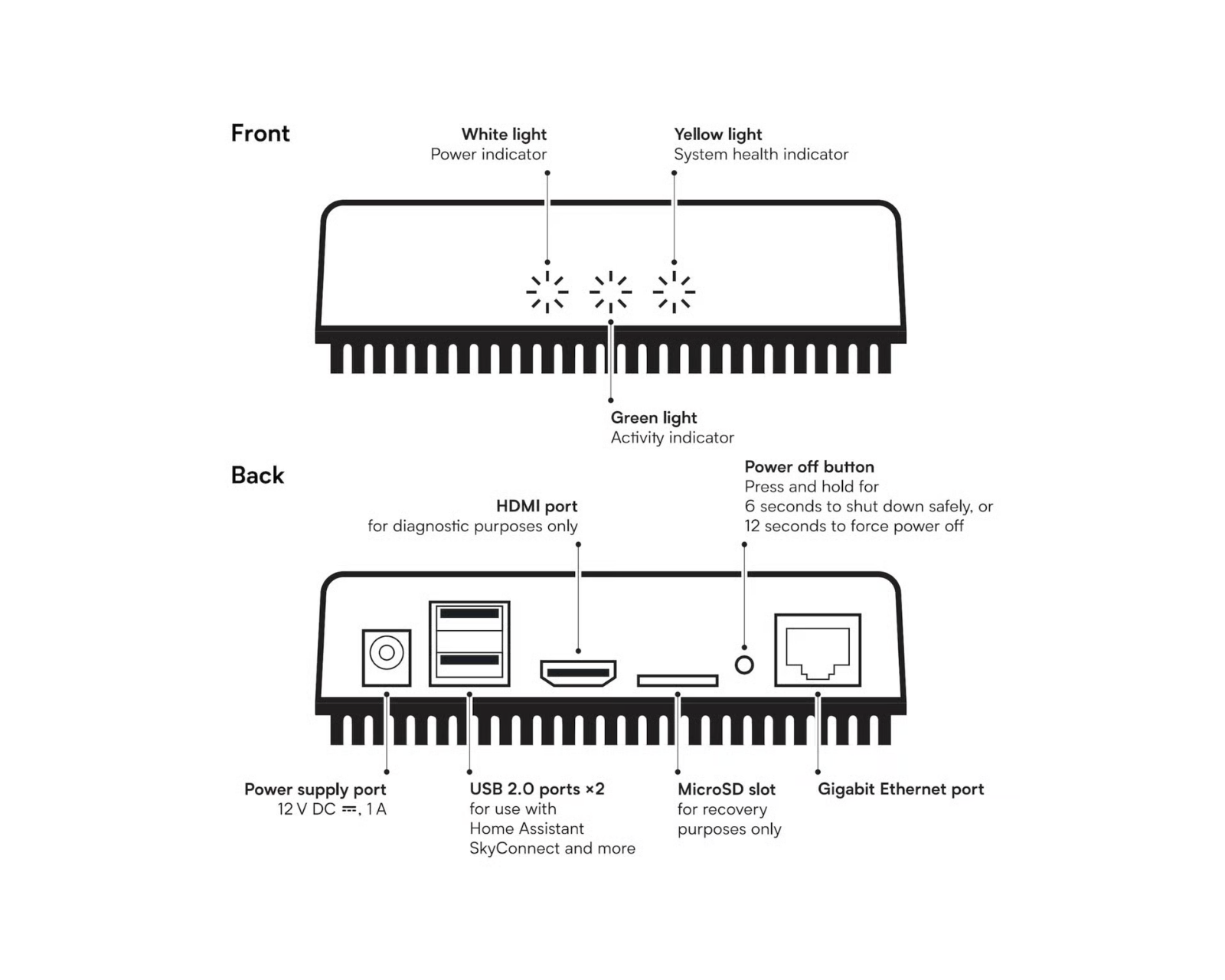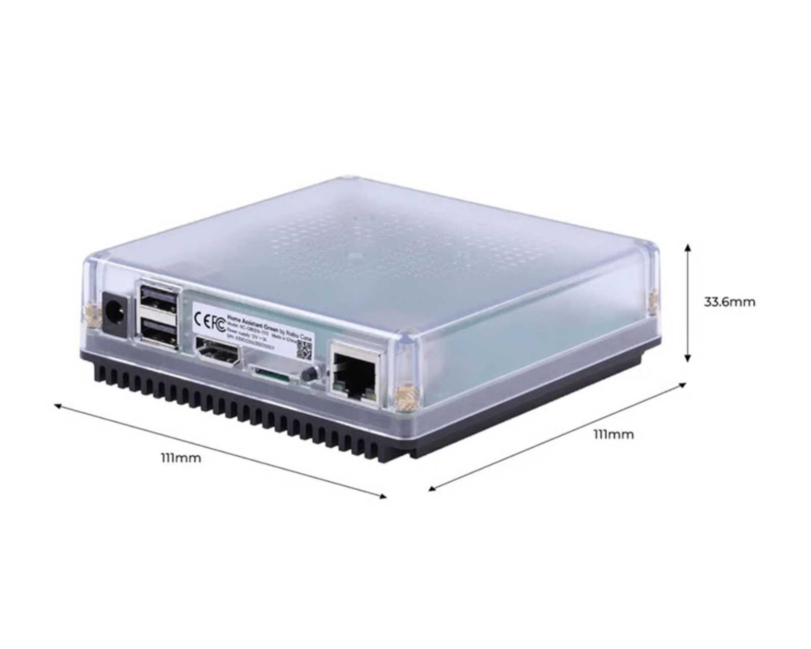 Home Assistant Green er en styrcentral for smarte hjem fra Nabu Casa, som er designet til at lette brugen af Home Assistant. Udstyret med en firekernet ARM-processor på 1,8 GHz og 4 GB RAM tilbyder den kraftfuld ydeevne for hurtig og effektiv drift. Med 32 GB eMMC lagring forinstalleret med Home Assistant bliver opsætningen enkel og hurtig.Byggekvaliteten er i top med en robust konstruktion og en stor køleflade, som muliggør en lydløs køling. De dobbelte USB-porte og en Gigabit-port sikrer hurtige og pålidelige forbindelser til alle dine smart home-enheder. I pakken medfølger også både strømkabel og netværkskabel, hvilket giver dig alt hvad du behøver for hurtigt at komme i gang. Home Assistant Green tilbyder support for SkyConnect, hvilket yderligere øger dets anvendelighed i et smart hjem.