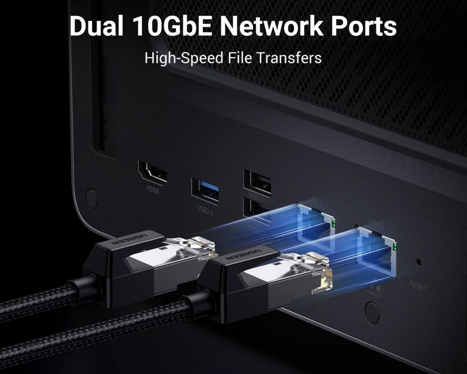 NASync DXP6800 Pro er en NAS-enhed fra UGREEN, som tilbyder dobbelte 10GbE højhastighedsnetværksporte. Disse porte kan aggregeres for at opnå en båndbredde på 20G, hvilket muliggør hentningshastigheder på op til 2500MB/s. Denne enhed henvender sig til brugere, der håndterer store mængder data, såsom multimediafiler og dokumenter.NASync DXP6800 Pro er udstyret med en 12. generations 10-core Intel Core i5-processor, som giver betydelige forbedringer i processorens ydeevne sammenlignet med tidligere versioner. Den har seks SATA- og to M.2 NVMe-enhedsbade og tilbyder en maksimal lagringskapacitet på 196TB. Den understøtter forskellige RAID-niveauer, herunder RAID0, RAID1, RAID5, RAID6 og RAID10, hvilket giver fleksibilitet i datasikkerhed og lagring. Denne enhed tillader effektiv lagring og overførsel af tusindvis af HD-film og billeder.