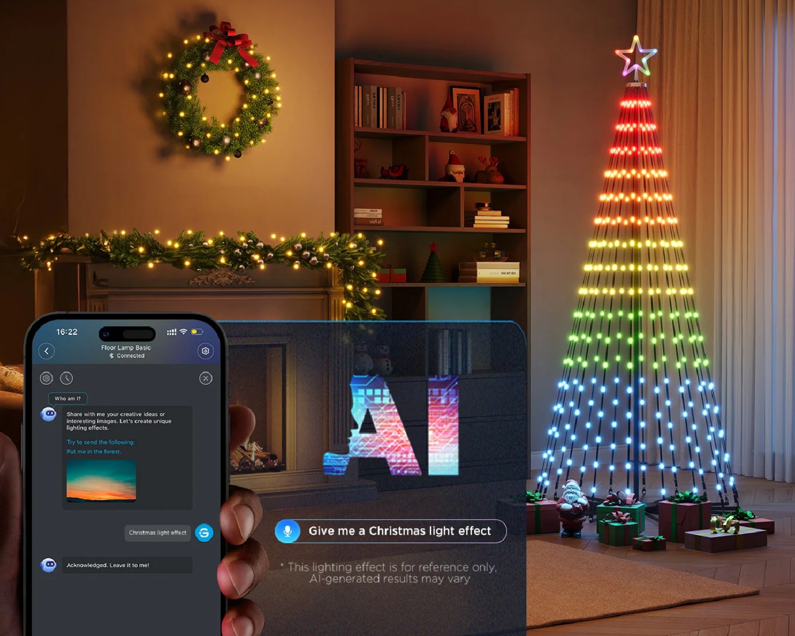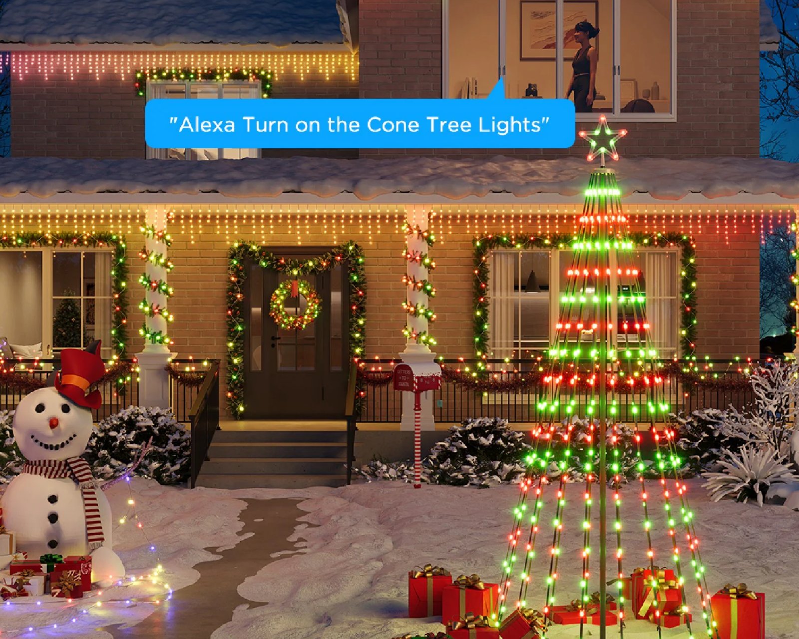 Cone Tree Lights er en lysdekoration fra Govee, som efterligner et juletræ og skaber en festlig stemning i alle miljøer. Disse lamper er designet til nemt at skabe en glad og hyggelig atmosfære i løbet af helligdagene med en smidig installation og smarte kontrolmuligheder. Med støtte for RGBIC-teknologi tilbyder disse lys over 16 millioner farver til personalisering og kan styres via Govee Home App.Lysene er bygget til at klare udendørs brug og har en beskyttet konstruktion mod vind og er IP67-vandafvisende, hvilket gør, at de tåler både regn og sne i hele vinterperioden. Med 82 forudindstillede sceneindstillinger kan lyset tilpasses til forskellige lejligheder, og den indbyggede mikrofon gør, at de kan synkroniseres med musik uden ekstra udstyr. Der er også AI-baserede funktioner til at skabe skræddersyede lyskoncepter.