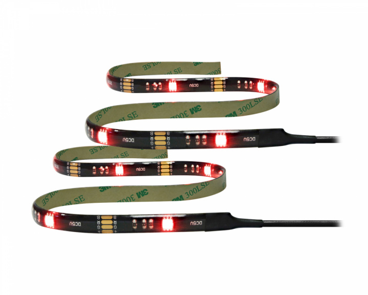 En LED strip specielt udviklet til brug sammen med dit gaming setup. LED-strimlen sættes let på bagsiden af din skærm eller skrivebord ved hjælp af dobbeltklæbende tape.De to LED-strips forbindes til en modtager som også er fastgjort med dobbeltklæbende tape, fra denne modtager går et USB-kabel, der tilsluttes et ledigt USB-stik på din computer eller en AC-adapter. Modtageren har også et kabel med en IR-modtager, denne skal placeres åbent, så fjernbetjeningen har nemmere ved at sende signaler.