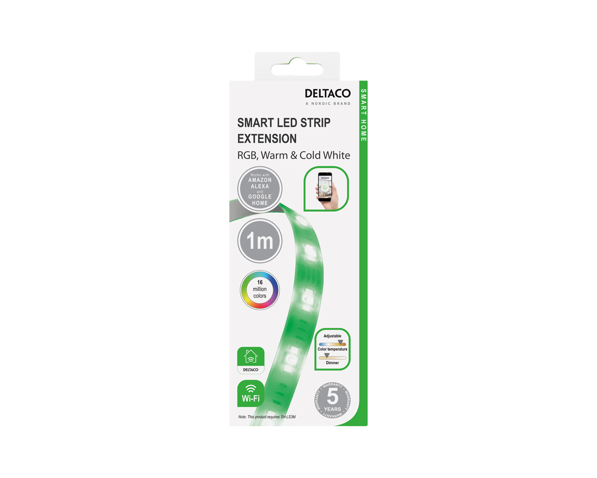 Med dette bundt får du både SH-LS3M og SH-LSEX1M til en fordelagtig pris!DELTACO SH-LS3M er en smart LED strip, der kan bruges til belysning i forskellige miljøer. Du kan montere LED-strimlen på forskellige overflader enten med den dobbeltsidede 3M-tape på bagsiden eller med det medfølgende monteringsbeslag i silikone, hvis du ønsker at skrue LED-strimlen fast. Juster længden på LED-strimlen ved at klippe den længde du ønsker, der er tydelige markeringer hver 10. centimeter. Det er også muligt at forlænge LED-strimlen op til 5m (forlængelse sælges separat).