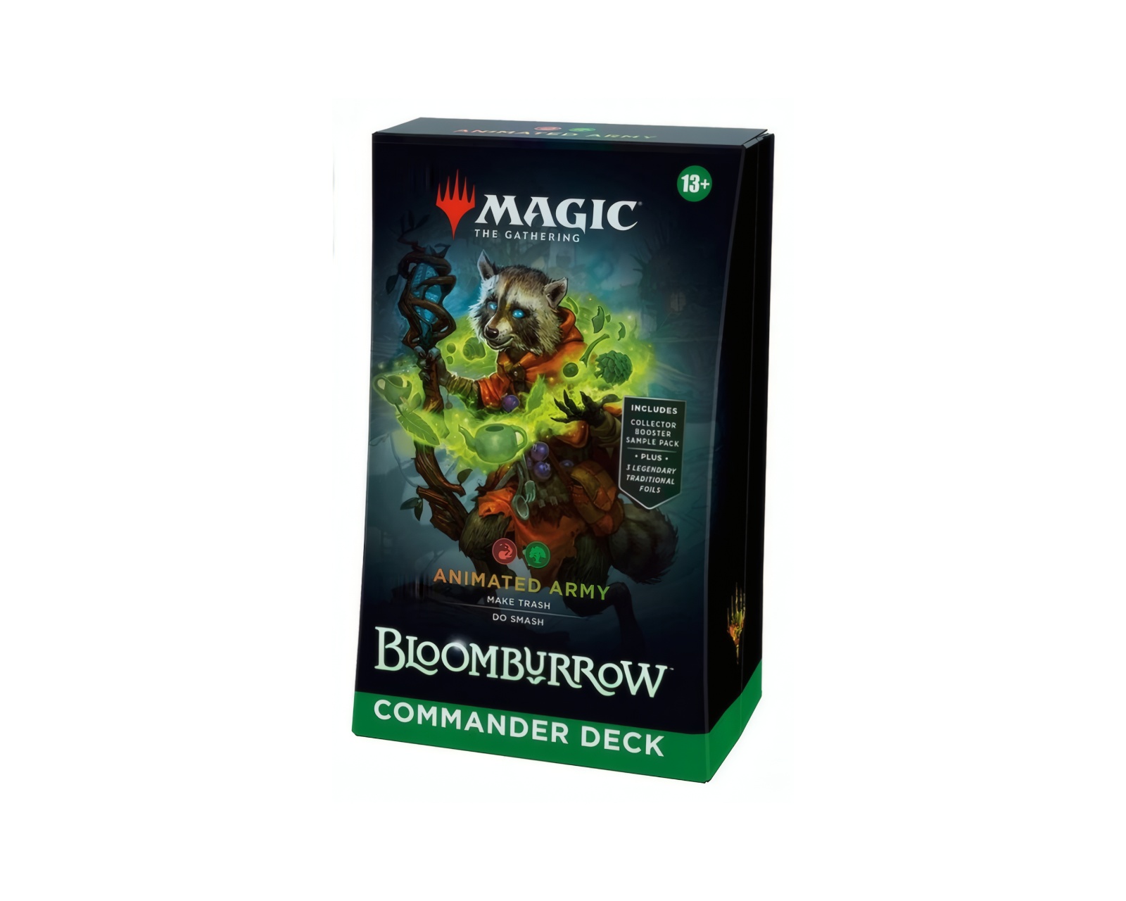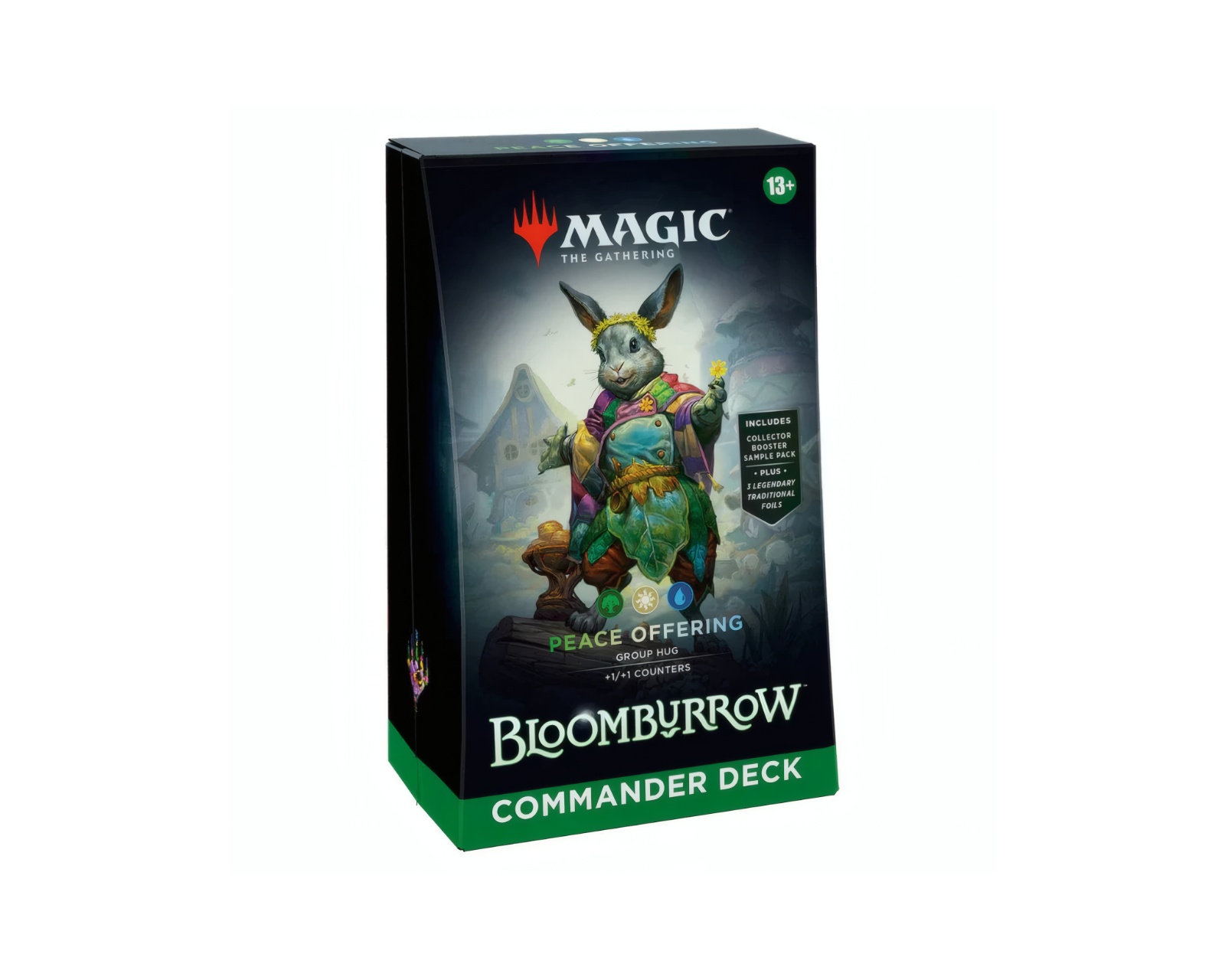 Bloomburrow Commander Deck er et færdigt kortspil fra Magic: The Gathering, som indeholder 100 magiske kort designet til strategisk spil med op til fire spillere. Den kommer med en blanding af kort, inklusive et borderless foil face-kort, et borderless Imagine: Courageous Critters foil-kort og 98 ikke-foil kort, hvilket gør den let tilgængelig for både nybegyndere og erfarne gamere. Med dette deck kan spillerne deltage i en kamp, hvor mindre væsner som mus, frøer og flagermus står i centrum, hvilket gør spillet til en unik oplevelse af styrke og strategi.Deckens byggekvalitet er høj med tydeligt trykte kort og et robust spelformat, og den indeholder nye kort, som forstærker spiloplevelsen med 15 nye magiske kort. Udover kortene indgår et kort sammenstændt pakke, tokens og en livskalkulator, som letter spillet. Deckboxen rummer op til 100 kort og er praktisk til opbevaring og transport.