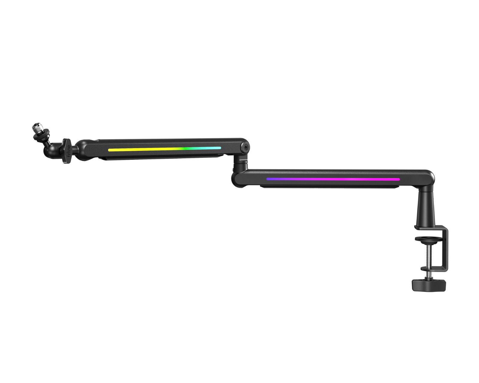 BM88 Pro er en mikrofonarm fra Fifine. Den tilbyder et højprofilsdesign, som forbedrer din streaming- og indspilningsmiljø. Enheden er udstyret med en 360-graders roterende mikrofonholder, der sikrer en sømløs indspilningsoplevelse. Mikrofonarmen er lavet til at passe de fleste skriveborde og bænke med sine 3/8"- og 5/8"-adaptere.Den er kompatibel med populære mikrofoner som HyperX, Blue Yeti, Shure SM7B og Rode, hvilket gør den alsidig til forskellige anvendelsesområder. Den justerbare design inkluderer et roterende og svingende kugleled for nem tilpasning, hvilket giver en hældning fra -90° til +90° og fuld 360° rotation. Også kabelstyring er indbygget for en organiseret arbejdsplads.