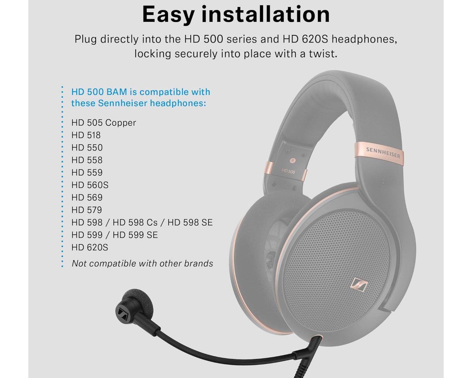HD 500 BAM er en høj kvalitets instikmikrofon fra Sennheiser, designet til at forbedre lydoptagelsen når du spiller, streamer eller deltager i videomøder. Mikrofonen tilbyder en kondensatorstruktur med kardioid retningsbestemthed, hvilket effektivt minimerer baggrundsstøj og sikrer klar stemmeoverførsel. Den er kompatibel med hovedtelefonerne HD 560S, HD 505 og HD 620S, hvilket gør den til et alsidigt supplement for lydentusiaster.HD 500 BAM leveres med en bomarm, som inkluderer kontroller for volumen og lyddæmpning, hvilket gør den nem at bruge. Installationen er enkel; du tilslutter mikrofonen direkte til hovedtelefonerne og låser den på plads uden behov for værktøjer. Produktet inkluderer desuden tre udskiftelige popscreens i skum og en Y-adapter til yderligere tilslutninger, hvilket gør den til en perfekt løsning til både konsol- og computerbrug. Denne mikrofon giver desuden en fleksibel afspilningsløsning, kompatibel med en række enheder som computere, tablets og smartphones, hvilket gør den ideel til brug i forskellige miljøer.