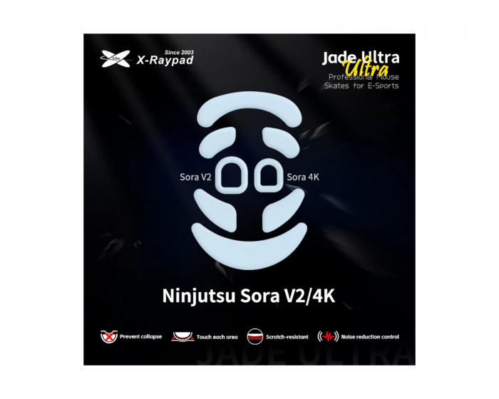 Jade Ultra Skates til Ninjutsu Sora V2/4K er et sæt musefødder fra X-raypad, som tilbyder en 1 mm tyk overflade af ren PTFE for forbedret ydeevne. Disse skøjter er designet til at forhindre sammenbrud og bidrager til en mere stille og stabil brug ved at anvende et ekstra fyldlag for at dæmpe lyd og vibrationer. Sættet leveres med to sæt, hvilket gør det ideelt for gamere, der søger øget kontrol og præcision under spil.Jade Ultra-serien er specifikt designet til at blive brugt med både stof- og plastmusmåtter, men er ikke egnet til glasoverflader. Musefødderne er også ridsefri og tilbyder en jævn glidyta for at lette bevægelser i alle retninger. Med den præcise tykkelse på 1 mm og den fine PTFE-overflade giver disse skøjter optimal kontakt med musemåtten for at sikre, at hver bevægelse registreres nøjagtigt.