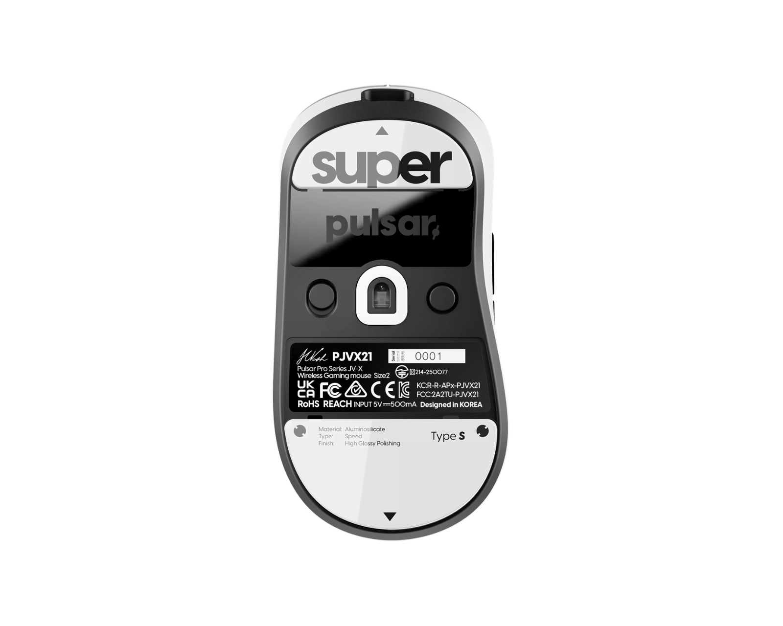 Glass Skates Type-S før JV-X er et museglidningssæt fra Superglide. Disse glidflader er fremstillet af stærkt aluminiumsilikatglas, hvilket giver en meget glat overflade til mikrosigt og sporing. De er designet til gamere, der søger en stabil og hurtig glidoplevelse uden at slides lige så hurtigt som traditionelle PTFE-fødder.Materialet i Superglide består af hærdet glas med en ny mikrostruktur, der muliggør en hurtig og glat glidning samt fremragende stopkraft i forskellige spiltakter. Den afrundede kantdesign tilbyder en blødere følelse ved brug. Disse glidflader har en lang levetid og kan bruges næsten permanent uden betydeligt slid. Bemærk, at disse skates ikke anbefales til brug på glas musemåtter.