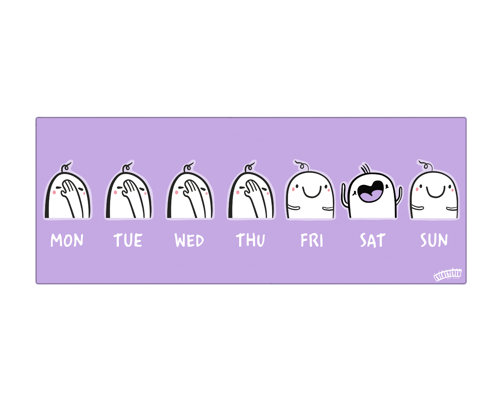 WEEKDAYS er et mussemåtte fra Evensteven, som tilbyder en ekstra bred overflade til både mus og tastatur. Den er lavet af et smidigt ultraweave-stof, hvilket sikrer en præcis og jævn glidefunktion for musen. Mussemåtten har en skridsikker underside, der forhindrer, at den glider på skrivebordet, hvilket giver en stabil platform til gaming. Den forstærkede søm rundt om kanterne bidrager til en øget holdbarhed og mindsker risikoen for slitage.Mussemåtten er designet til at beskytte skrivebordet mod ridser og pletter, hvilket hjælper med at holde arbejdsfladen ren og velholdt. Den glatte overflade tillader en præcis bevægelse for alle typer mus og kompatibelt gamingudstyr, hvilket gør den ideel til gamere og kontorarbejdere.