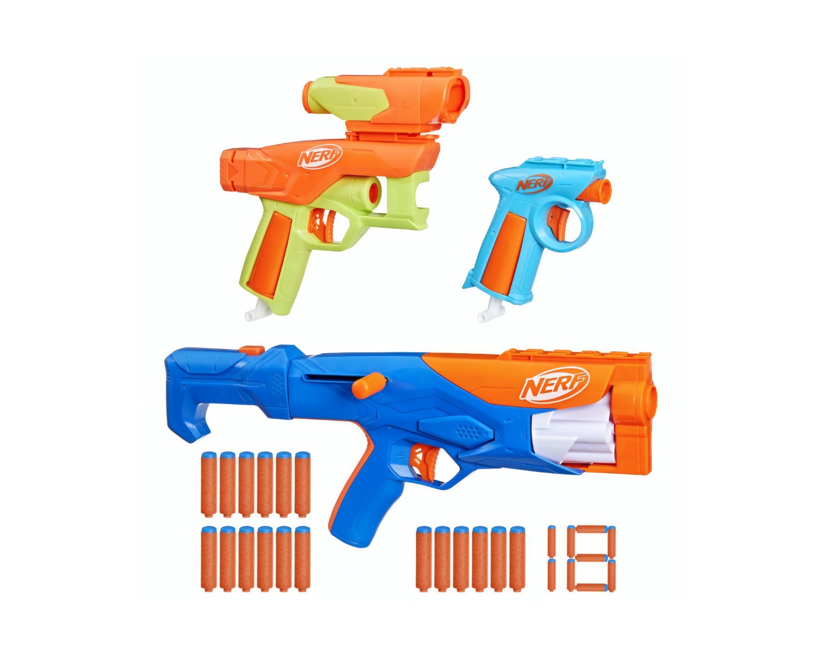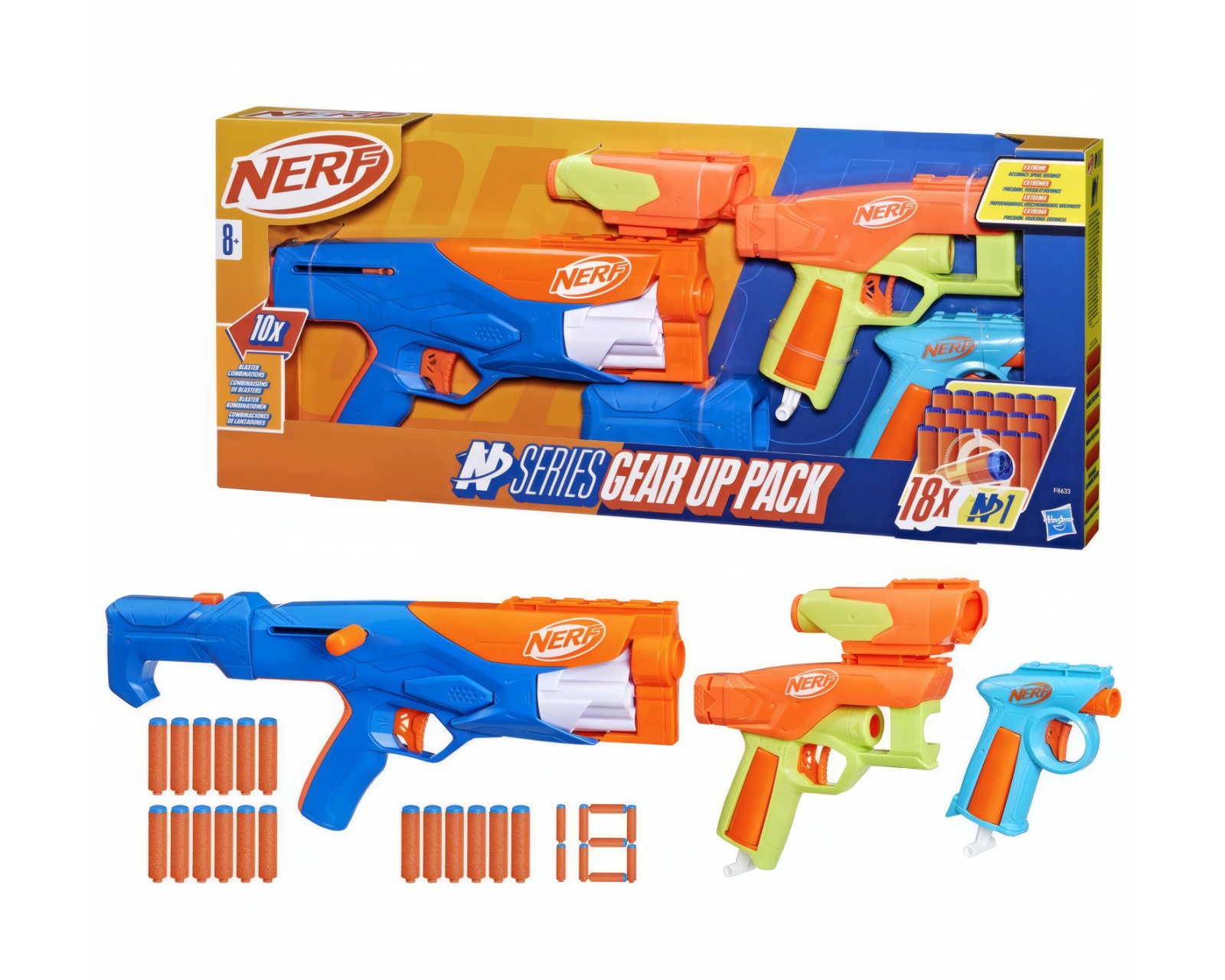 N-Series Gear Up Paket er et spilludstyrspakke fra Nerf, som indeholder tre forskellige blasters og to tilbehør. Pakken giver mulighed for at skabe op til ti unikke blasterstile. Sættet inkluderer 18 N1-skumdartpile og er beregnet til både indendørs og udendørsspil. Blastrerne har en affyringsmekanisme med enkelt affyring, samt en boltmekanisme til hurtig skudlevering.Blastrerne i N-Series Gear Up Paket er bygget til at sikre nøjagtige og optimerede skud. Flex- og Dealer-blastrerne bruger et nedtrækbart tændingssystem, mens Wielder-blasteren har en boltmekanisme, der kan affyre op til fire pile efter hinanden. Det medfølgende greb er designet til at fastgøre på to af blastrerne, hvilket øger stabiliteten og kontrollen under spil. Sigtet kan bruges med alle tre blastrere, hvilket forbedrer præcisionen. Ifølge producentens anvisninger er kun Nerf N Series N1-skumdartpile kompatible med disse blaster.