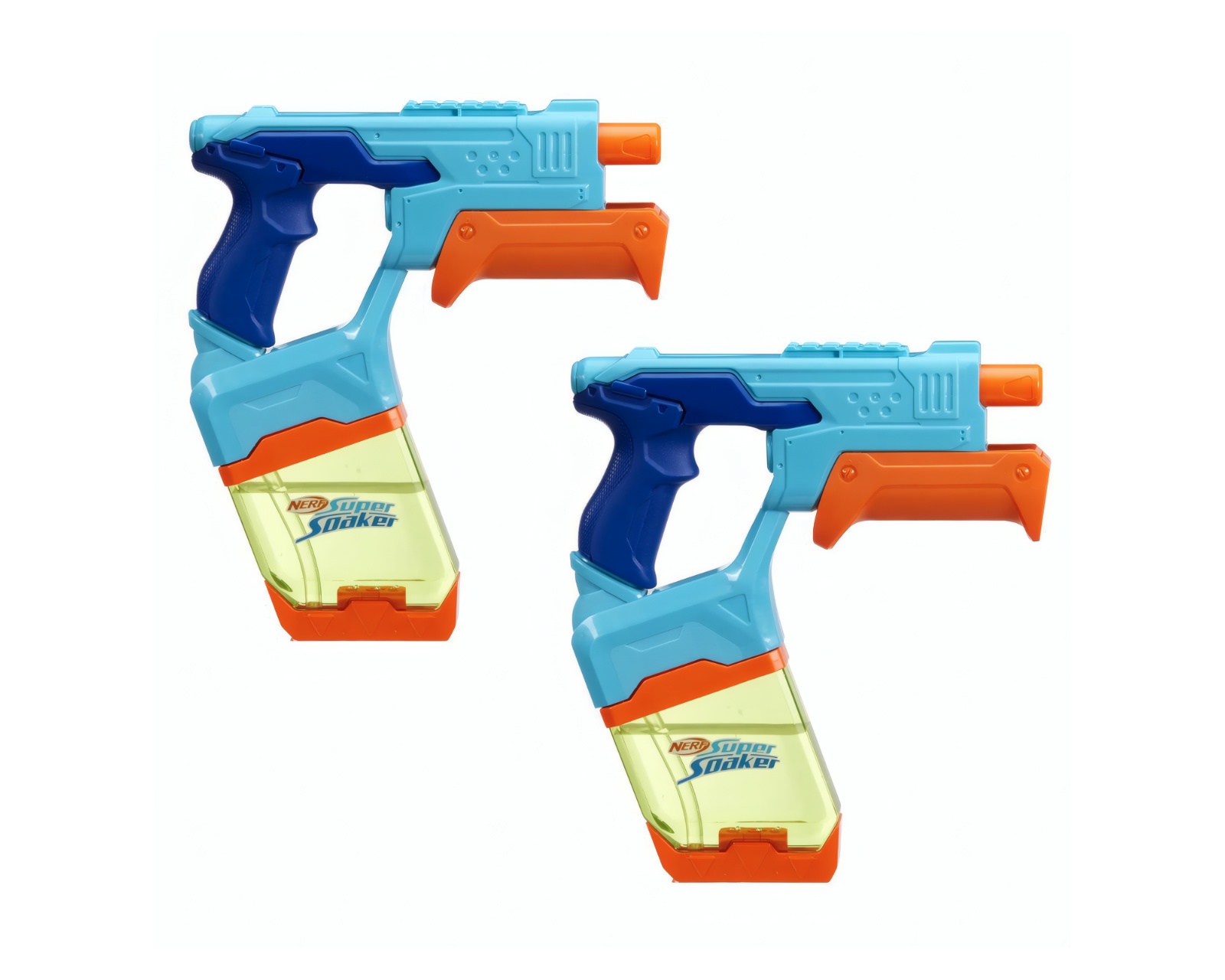 Super Soaker Dunk Fill 2-pak er et vandblaster sæt fra Nerf, der tilbyder hurtig påfyldning af tanke til øjeblikkelig vandleg. Sættet indeholder to vandblastere med en kapacitet på 300 ml pr. gennemsigtig tank, hvilket gør dem ideelle til udendørs aktiviteter og vandlege. Designet er nemt at bruge, perfekt til børn, der vil have det sjovt på varme dage.Denne vandblaster er udviklet til at håndtere direkte påfyldning ved at dyppe tankene i vand. Den brugervenlige pumpefunktion frigiver vand i store mængder, hvilket gør hver kamp dynamisk og spændende. Den robuste konstruktion af blasterne sikrer holdbarhed under leg. I kombination med den gennemsigtige tankdesign kan brugeren nemt se vandniveauet og undgå uventet påfyldning. Sættet fremmer aktiv leg og ungdommelig interaktion, hvilket gør det til en fremragende aktivitet for møder med venner og familie.