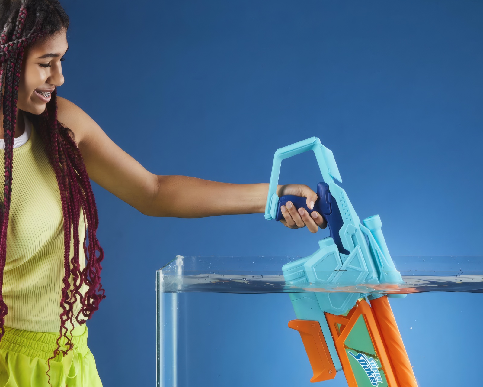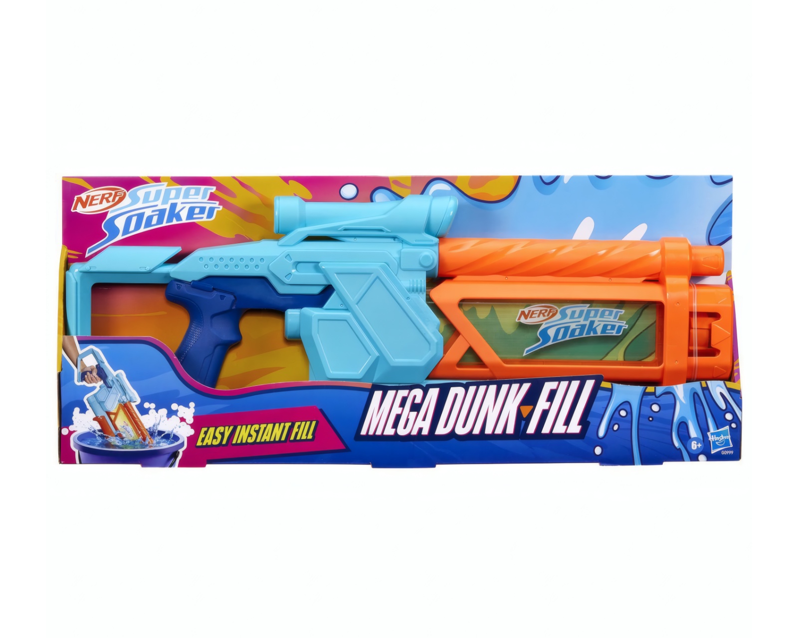 Super Soaker Dunk Fill Mega er en vandblaster fra Nerf, der tilbyder hurtig genopfyldning og en kapacitet på 1005 ml. Den er designet til at fremme vandleg udendørs. Enheden muliggør øjeblikkelig genopfyldning ved at dyppe tanken i vand, hvilket sparer tid under leg. Den er konstrueret med en gennemsigtig tank, så brugeren kan holde øje med væskeniveauet.For at aktivere blasterfunktionen anvendes en pumpe mekanisme ved at håndtaget trykkes frem og tilbage, hvilket giver en kraftfuld våde. Udstyret med et sigte, giver den præcisionsmålretning og er tilpasset til at blive brugt af børn, hvilket fremmer aktiv og fysisk leg.