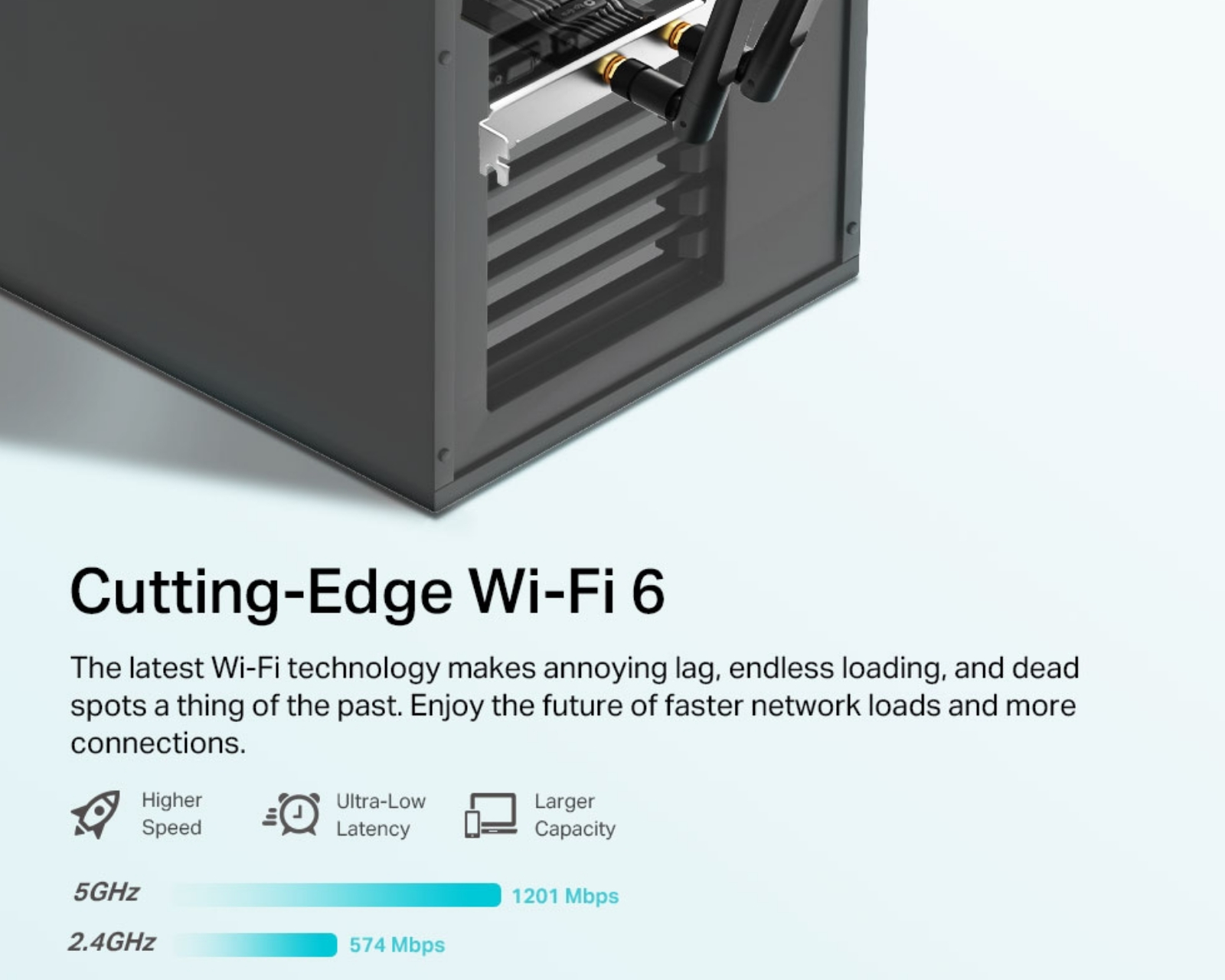 - Wi-Fi 6 hastighed op til 1201 Mbps (5 GHz)