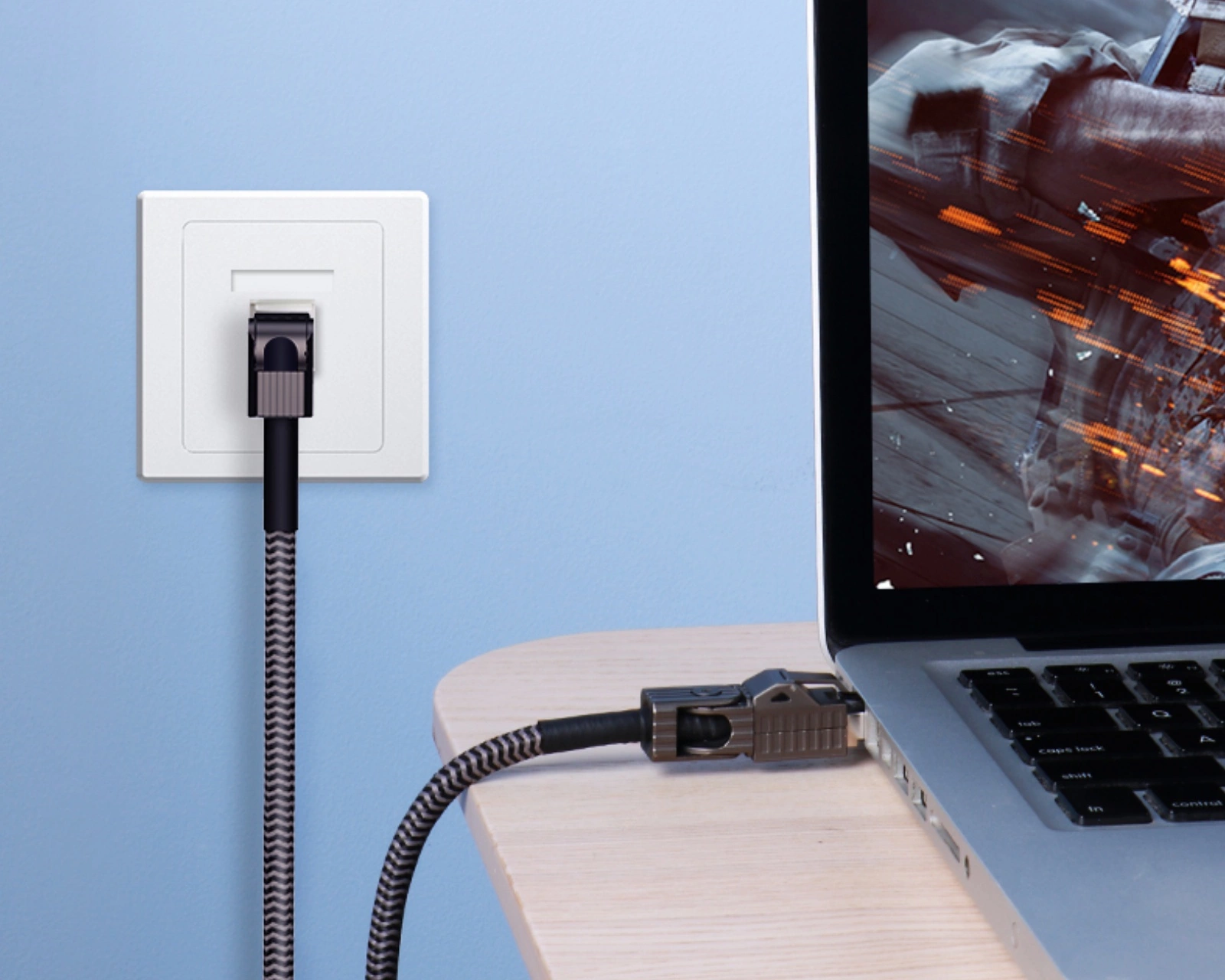 Cat8 Ethernet Kabel ENC01 1m er et netværkskabel fra Hagibis, som tilbyder høj hastighed og stabil forbindelse til forskellige netværksmiljøer. Den leverer dataoverførselshastigheder på op til 40Gbps og en båndbredde på 2000MHz, hvilket gør den velegnet til både kontorer og hjem, hvor netværkskapacitet er afgørende. Kabelen er robust og designet til at klare forskellige installationsscenarier gennem sin fleksible konstruktion.Kabelen har en 90 graders rotation i fire retninger, hvilket gør, at den nemt kan tilpasses forskellige installationsbehov. Den er designet til ikke at tage skade af vridninger og bøjninger, hvilket øger levetiden og anvendeligheden i trange rum. Materialet består af en høj holdbarhed flettet krop og en PVC-beskyttelsesbelægning, hvilket giver en stærk og holdbar konstruktion. Den har også en flerledet skærmet design, som inkluderer en ren kobberkerne og dobbeltlags aluminiumfolie for at sikre maksimalkvalitet af signalet.