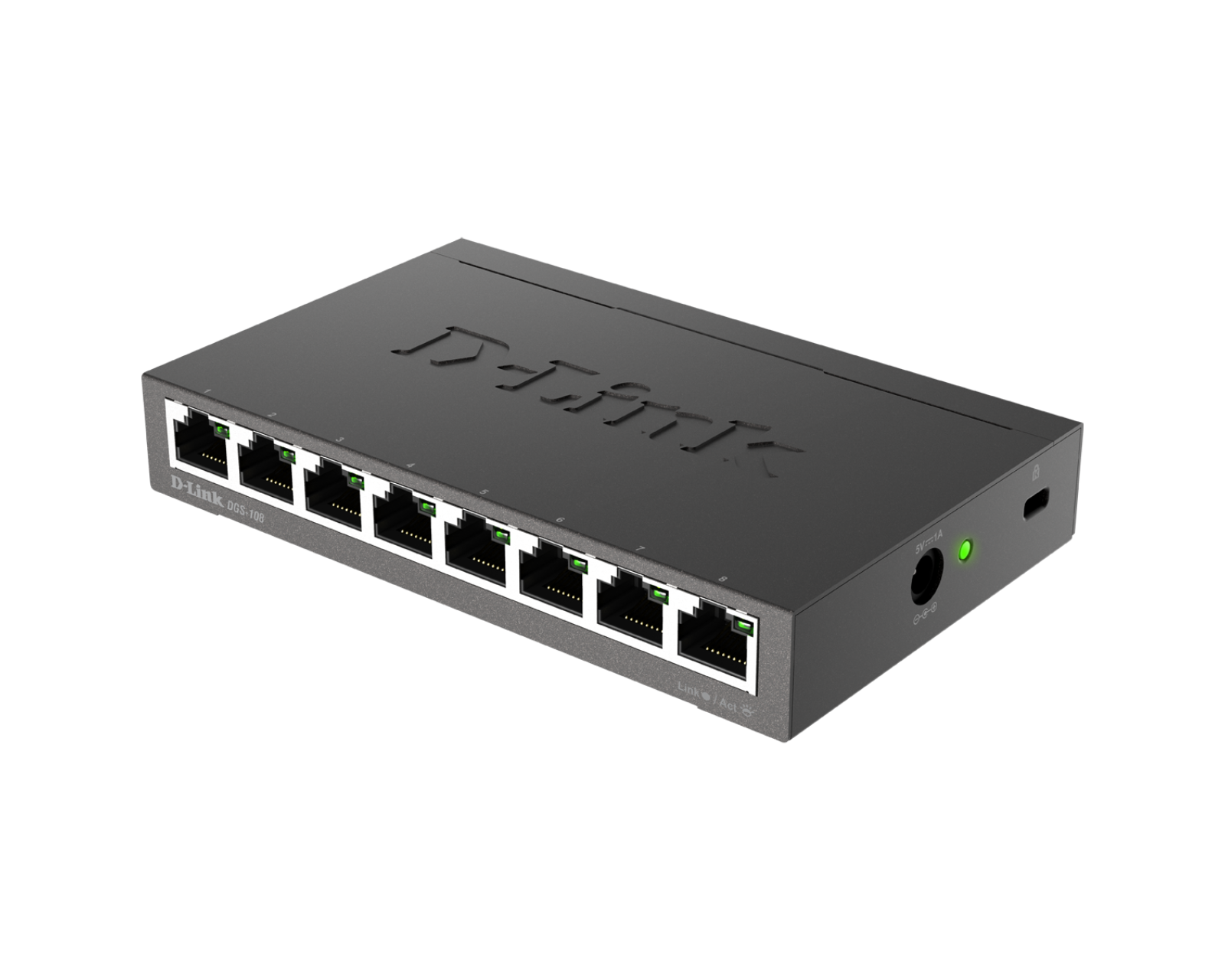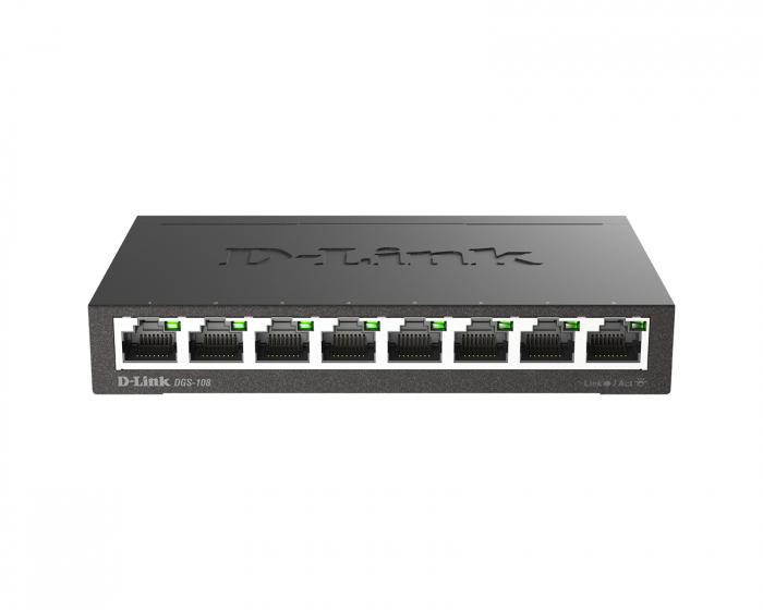 DGS-108 8-Port Gigabit er en netværksswitch fra D-Link, der tilbyder høj hastighed og effektivitet til små og mellemstore virksomheder. Switchens otte Gigabit Ethernet-porte muliggør hurtige og pålidelige forbindelser til forskellige enheder i netværket. Med en plug-and-play-installation er det nemt at opsætte switchen uden behov for avanceret konfiguration.Konstruktionen af DGS-108 præges af et robust metalhus, som bidrager til holdbarhed og varmeafledning, hvilket reducerer belastningen på de interne komponenter. Udstyret med automatisk MDI/MDIX-funktion, kræver den ikke krydsningskabler, hvilket forenkler installationen. Enheden understøtter også omfattende netværksstandarder som IEEE 802.3, 802.3u, og 802.3x, hvilket garanterer afbrydningsfri dataoverførsel.