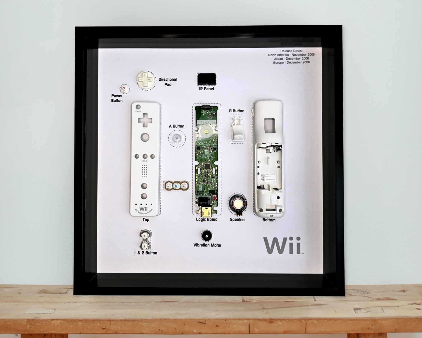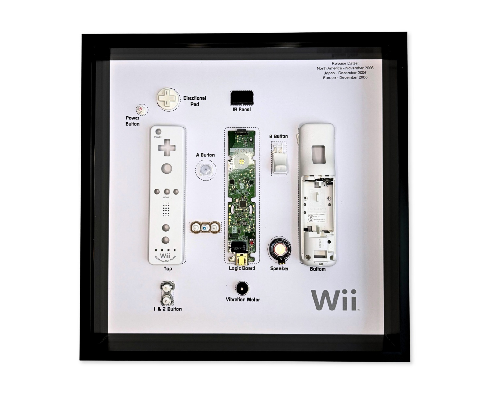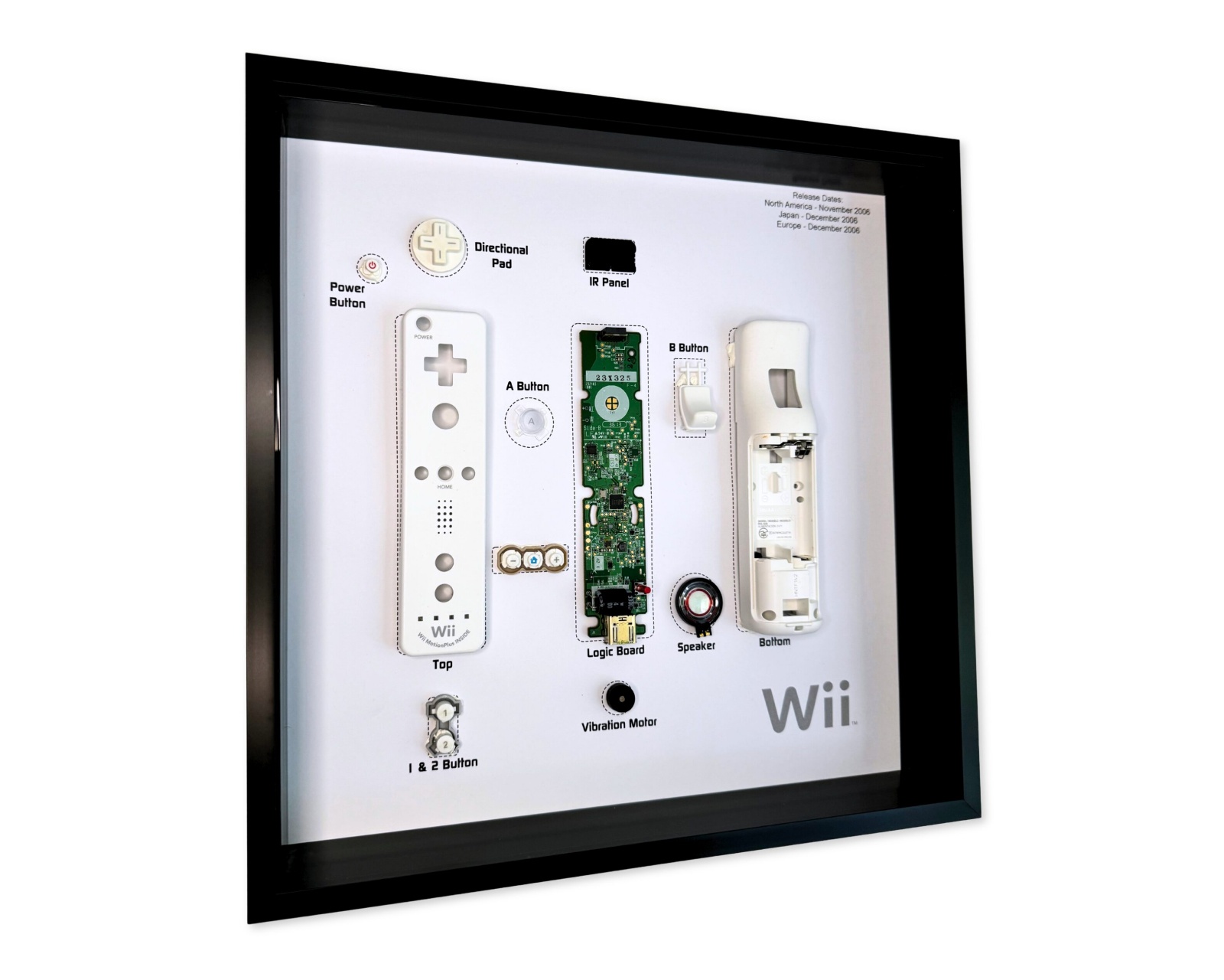 Retro Art Nintendo Wii Remote Controller Display er et produkt fra GRC, der sigter mod at vise den ikoniske Wii-controller. Denne display tilbyder en stilren og funktionel løsning for dem, der ønsker at fremhæve deres spiludstyr med stil. Den er særligt designet til gamere og entusiaster af retro-spil, der ønsker at bevare nostalgiske minder. Displayet fremstilles af materialer af høj kvalitet, som sikrer holdbarhed og lang levetid.Den er konstrueret til at give en sikker og stabil base for controlleren, hvilket betyder, at den står stabilt, uanset om den placeres på hylder, borde eller vægge. Med et omhyggeligt udarbejdet design fremhæver den alle detaljer i styrkontrollens form og funktion, hvilket gør den til en flot dekoration i ethvert rum.