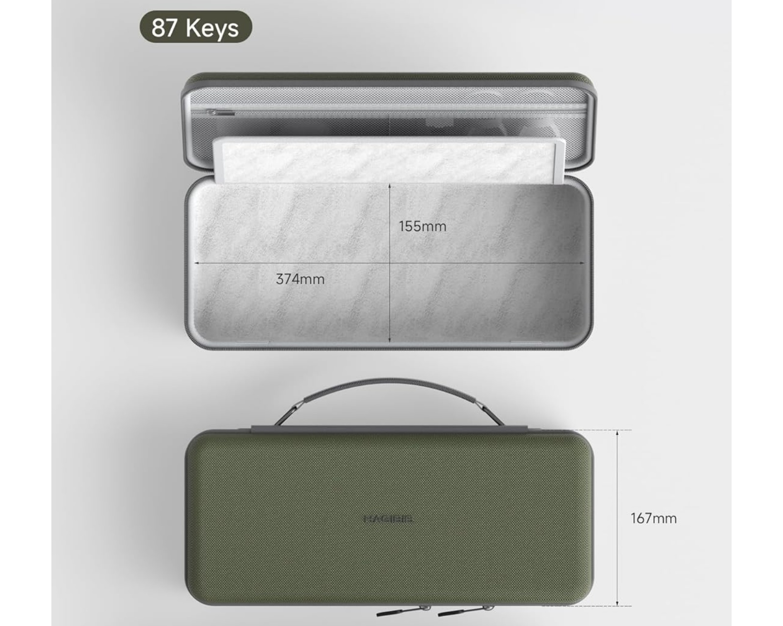 Hagibis tangentbordet opbevaringskasse er en hård skal taske, der tilbyder beskyttelse til enheder med 68 og 87 taster. Den har en stor kapacitet til opbevaring af elektroniske tilbehør, herunder tastaturer, mus, opladere, SSD-holdere, USB-nøgler og SD-kort. Produktet er struktureret til at blive brugt af gamere og andre, der har brug for en sikker og portabel opbevaringsløsning.Tasken er fremstillet af EVA-materiale, hvilket giver en hård ydre beskyttelse mod dråber, ridser, stød og stødbeskyttelse mod stænk. Den indre polstring er blød og beskytter mod ridser, mens den gennemførte skæring sikrer, at tilbehøret holdes adskilt for at undgå skader på hinanden. Stoffet er af 900D Oxford, hvilket er slidstærkt og nemt at rengøre. Opbevaringen er designet med separate rum og en lynlåslukket netlommer for at forhindre, at genstande falder ud ved åbning.