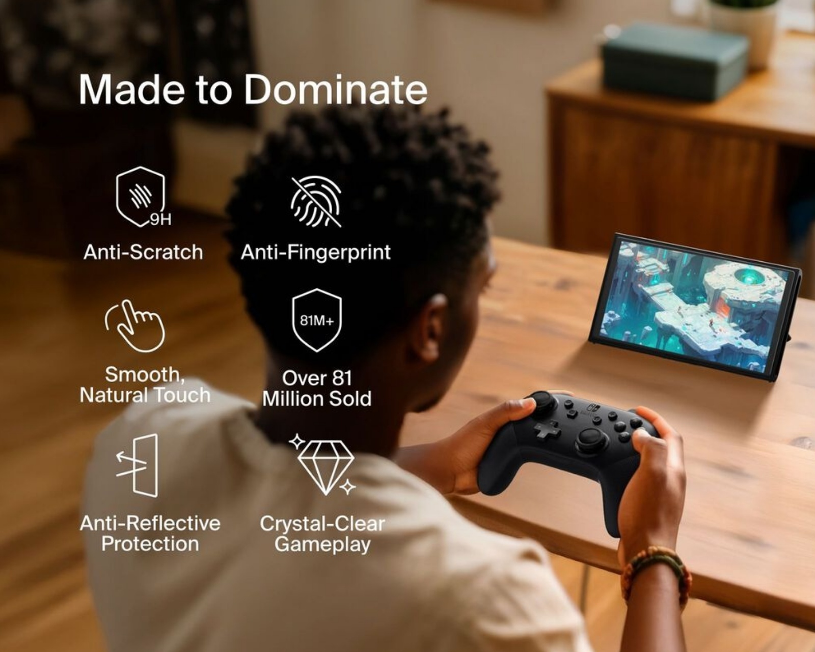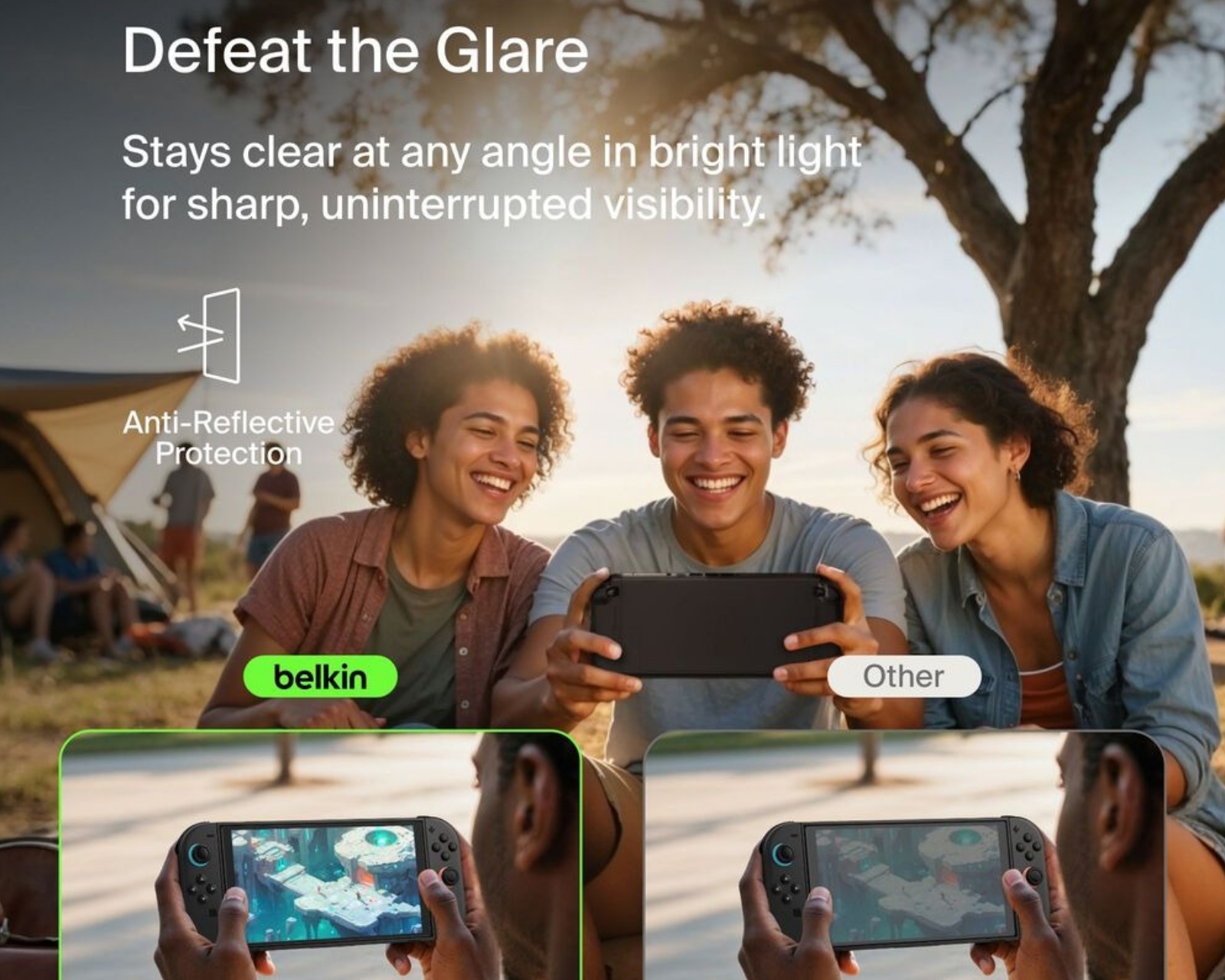 Antirefleks Skærmbeskytter til Nintendo Switch 2 er et produkt fra Belkin, der tilbyder beskyttelse og samtidig bevarer skærmens farver og skarphed. Skærmbeskytteren er designet specifikt til den nyeste model af Nintendo Switch og har en 9H hårdhed, hvilket giver en robust beskyttelse mod ridser og smuds. Den er velegnet til gamere, der ønsker at sikre, at deres enhed er sikker under spil, uanset om det er indendørs eller udendørs.Skærmbeskytteren er lavet af høj kvalitets hærdet glas med en tykkelse på kun 0,33 mm, hvilket bevarer den oprindelige berøringsrespons for en sømløs spiloplevelse. Den antireflekterende overflade muliggør brug i forskellige lysforhold. Skærmbeskytteren har også en anti-fingeraftryksbelægning, der holder skærmen ren og fri for snavs. Den medfølgende Easy Align-ramme gør installationen nem og boblefri. Produktets miljøvenlige aspekter inkluderer brugen af 60% PIR-glas og en 70% PCR-ramme.
