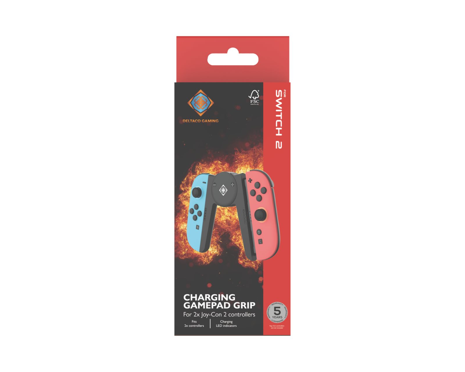 Grepp og ladestation til Joy-Cons fra Deltaco Gaming, som tilbyder nem opladning og behagelig håndtering af Nintendo Switch 2's Joy-Con-controllere. Den er designet til at rumme to Joy-Con-controllere og giver et ergonomisk grebdesign for bedre komfort og kontrol under spillet. LED-indikatorer viser opladningsstatus, og den magnetiske fastgørelsesmetode gør, at du nemt kan bruge produktet.Produktet er bygget til at forbedre spilsessionerne ved at give en mere traditionel følelse af en controller. Den ergonomiske design muliggør længere spillperioder uden ubehag, hvilket gør den ideel til både singleplayer og multiplayer-situationer. Med den stilfulde og funktionelle opbygning sikres en stabil og sikker holdning under spil. Opladningsindikatorerne giver hurtig feedback om enhedens status, hvilket bidrager til brugervenligheden.