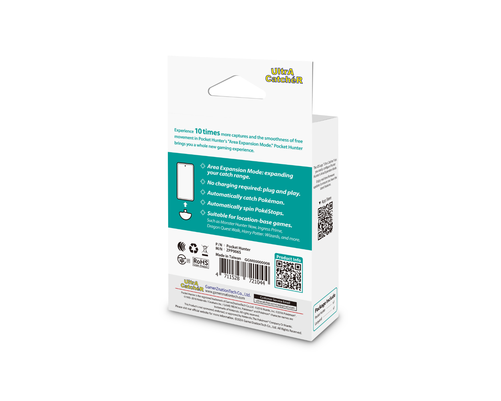 Pocket Hunter er en auto catch-enhed fra UltrA CatcheR, som letter automatiseringen af spillefunktioner i populære augmented reality (AR) spil. Produktet er udviklet for at forenkle spilleforløbet ved automatisk at spore og fange figurer under udforskning. Pocket Hunter tilsluttes nemt via USB-C og kræver ingen opladning, hvilket betyder, at gaming kan begynde med det samme. Det kompakte og lette design gør det ideelt til brug under længere gåture eller byeventyr.En indbygget passthrough-port muliggør samtidig opladning af telefonen under spil, med en kapacitet på 5V/1A. Enheden har smart LED-parring, der signalerer forbindelsesstatus med grøn blinkning for uparrede og lilla for parrede enheder. Enhedens byggqualitet fokuserer på holdbarhed og brugervenlighed. Den er optimeret til mobilspil og har en strømbesparende LED-funktion, der dæmpes efter tre minutters inaktivitet. Den er derfor velegnet til både casual gamers og dem, der ønsker at øge effektiviteten i sit spil.