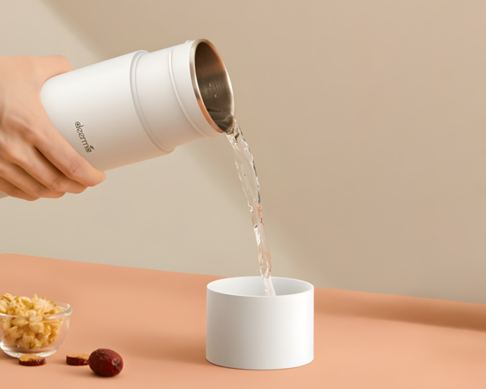 En praktisk elkedel fra Deerma, der tilbyder både kogning og termofunktion i en kompakt enhed. Den har en kapacitet på 350 ml og er fremstillet af holdbart 304 rustfrit stål, hvilket garanterer langvarig brug. Produktet er designet til at være let og bærbar, hvilket gør det ideelt til brug derhjemme, på kontoret eller under rejser.Enheden er forsynet med tre lag af termoisolering, hvilket gør, at det varme indhold holder temperaturen længere, når det er afkoblet. Den har også et sikkerhedsventilsystem med tre ventiler for at sikre effektiv fordampning og øget sikkerhed. Den enkelt-knapsteknik gør den brugervenlig, og den skridsikre silikoneplade sikrer stabilitet under brug. Kablerne er aftagelige for nem transport og opbevaring.
