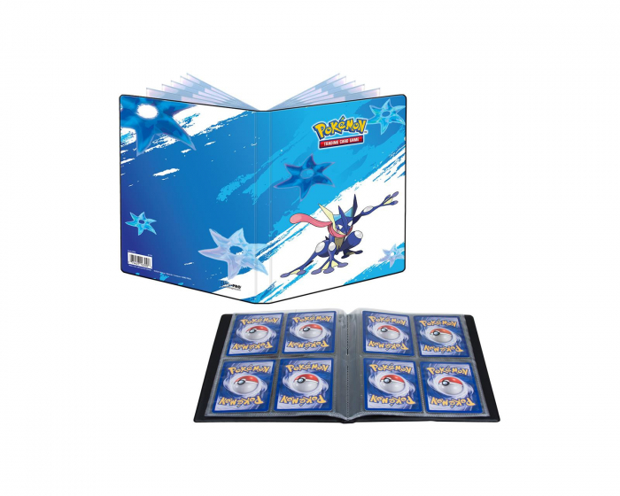 Pokémon Greninja 4-Pocket Portfolio er en Pokémon-mappe designet til at organisere og beskytte Pokémon-samlekort. Den kan indeholde op til 40 standardkort individuelt eller 80 kort, når den er dobbeltstablet. Mappen har også plads til op til 4 store kort. Den er velegnet til samlere og spillere af Pokémon-kort. Mappen har et design, der fokuserer på funktionalitet og holdbarhed. Den er lavet af syrefri og PVC-fri materialer, hvilket sikrer, at kortene er beskyttet mod skader og falmning. Med 12 sider, hvor hver side rummer 4-8 kort afhængigt af hvordan de placeres, kombinerer den enkelhed med kapacitet. Dimensionerne er cirka 16x20 cm, hvilket gør den til en kompakt løsning til opbevaring. Mappen er også officielt licenseret af Pokémon, hvilket garanterer produktets ægthed.Oversigt