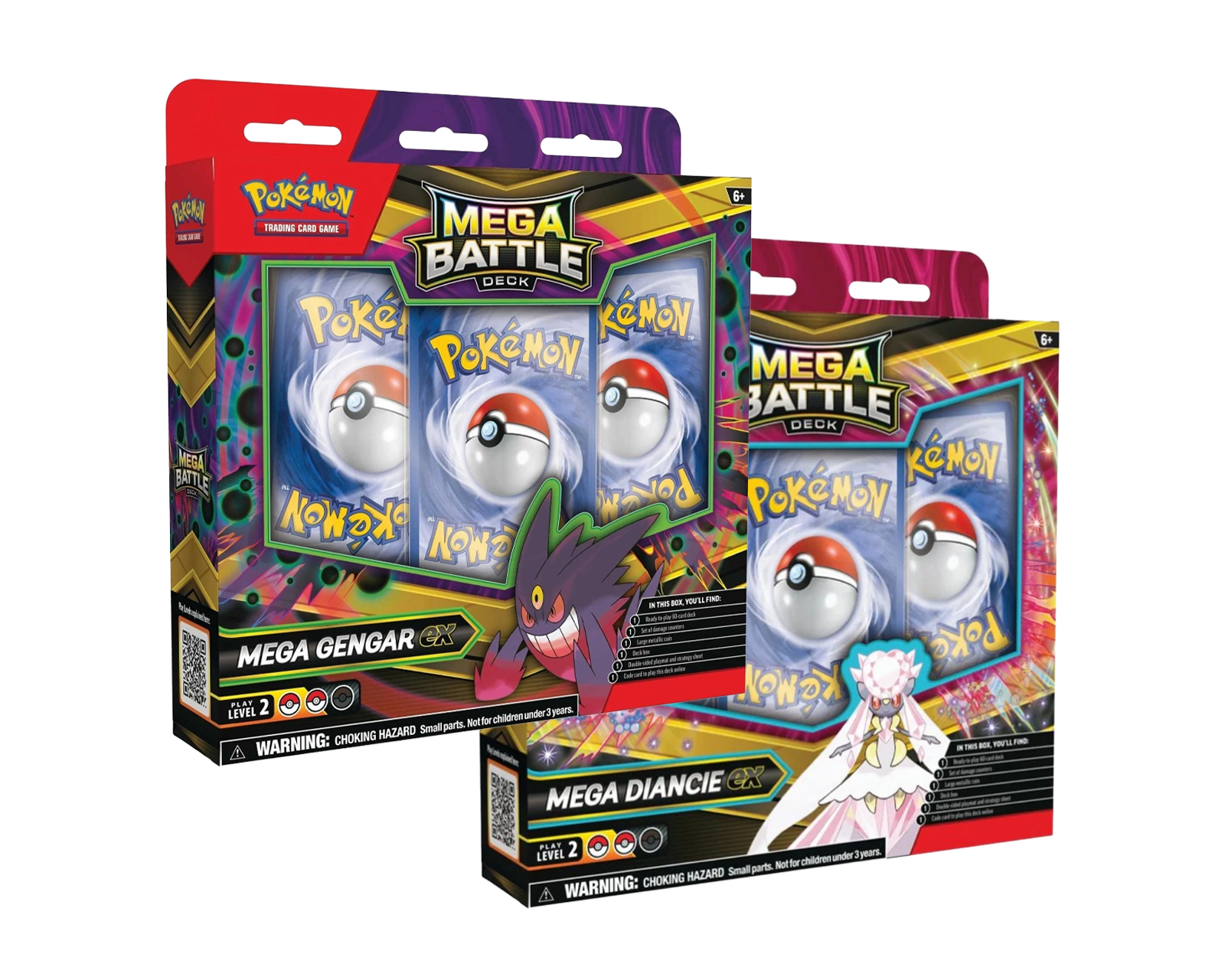 Battle Deck Ex Gengar/Diancie fra Pokemon indeholder 60 stykker samlekort, damage counter, metallisk mønt, kortæske og en tosidet spillematte.Et kodekort gør det muligt at spille med dette deck online, hvilket tilføjer en digital dimension til spillet.